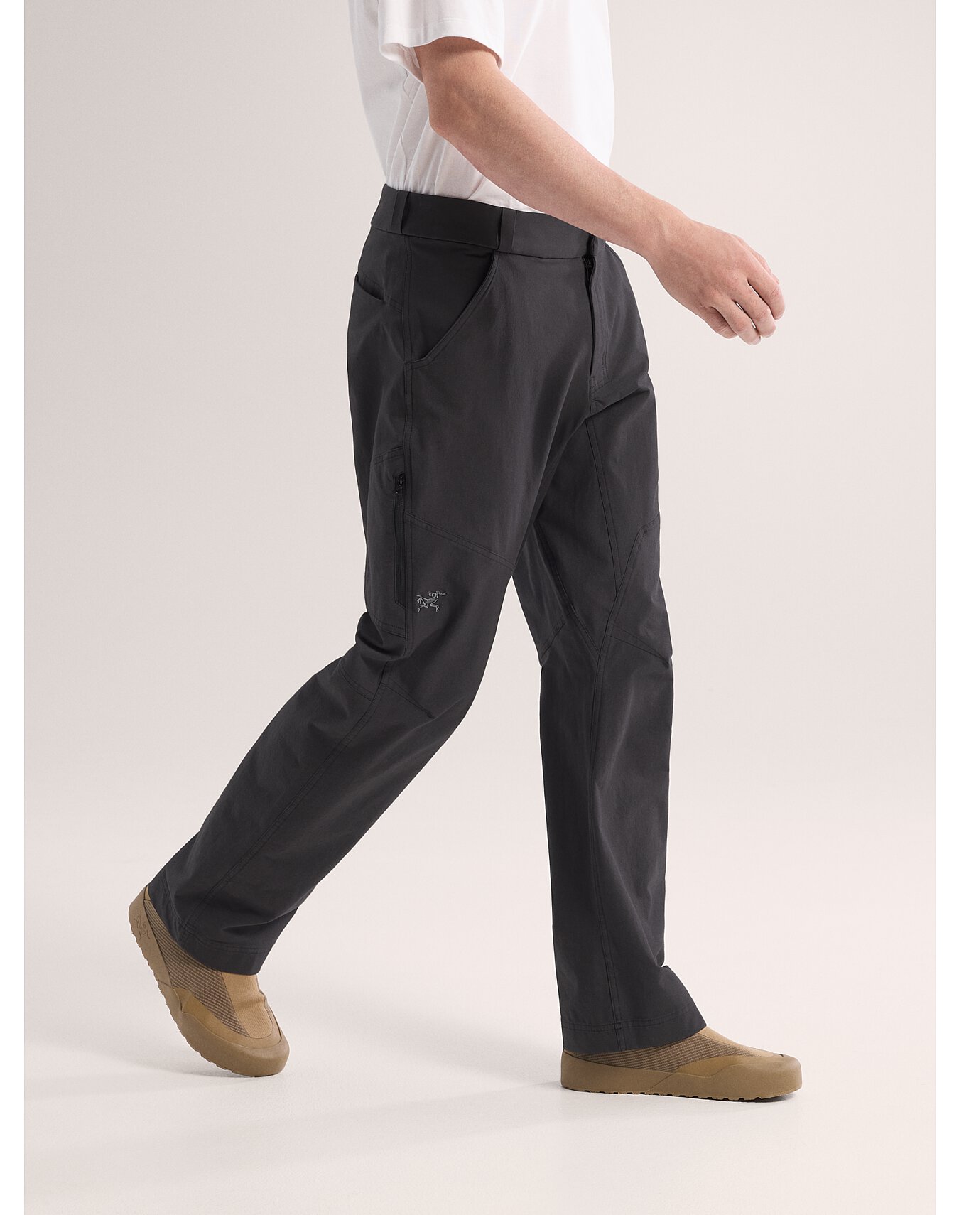 Das 260 g/m² Gewebe kombiniert die Weichheit von Biobaumwolle mit der Abriebfestigkeit und Atmungsaktivität von Nylon. Riegel und doppelte Topstitch-Nähte erhöhen die Strapazierfähigkeit. Der Bund trägt sich bequem unterm Klettergurt oder Hüftgurt des Rucksacks und alle Taschen sind einfach zugägnlich