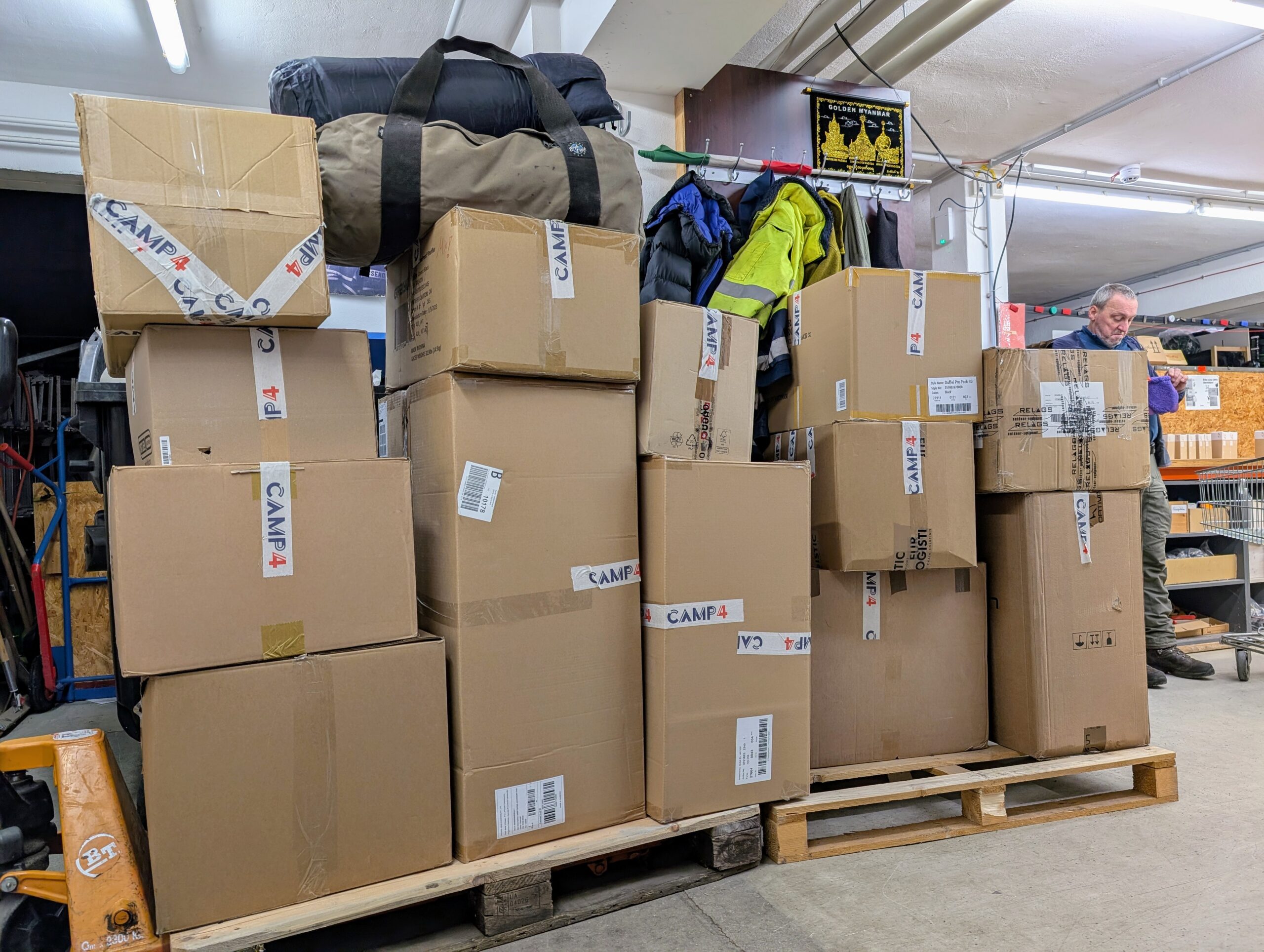 Und es war dann doch ein ziemlich besonderer Moment, wenn du merkst, dass all die kleinen Kisten und Kartons, die über die Wochen den Weg in den Keller gefunden haben zu einem beachtlichen Berg von drei Paletten (!) wurden. Und plötzlich dann aus nicht mehr gebrauchter Ausrüstung ganz konkrete Hilfe wird.