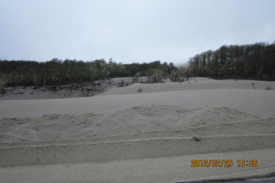 Morgens relativ ausgeruht in Osorno ankommend ergatterte ich noch ein Busticket für den Bus nur zwei Stunden später nach Punta Arenas, der südlichsten Stadt Chiles. Hinter Osorno in der Nähe des Passes über die Anden war der gesamte Boden mit einer bis zu einen halben Meter hohen grauen Staub- und Ascheschicht bedeckt, was Folge eines Vulkanausbruchs gewesen ist. Rund um Bariloche, einem bekannten argentinischen Skigebiet, war die Landschaft äußerst schön mit Seen, Bächen, Bergen, und sie wurde noch eindrucksvoller im nördlichen Patagonien, das der Bus in den Abendstunden passierte.