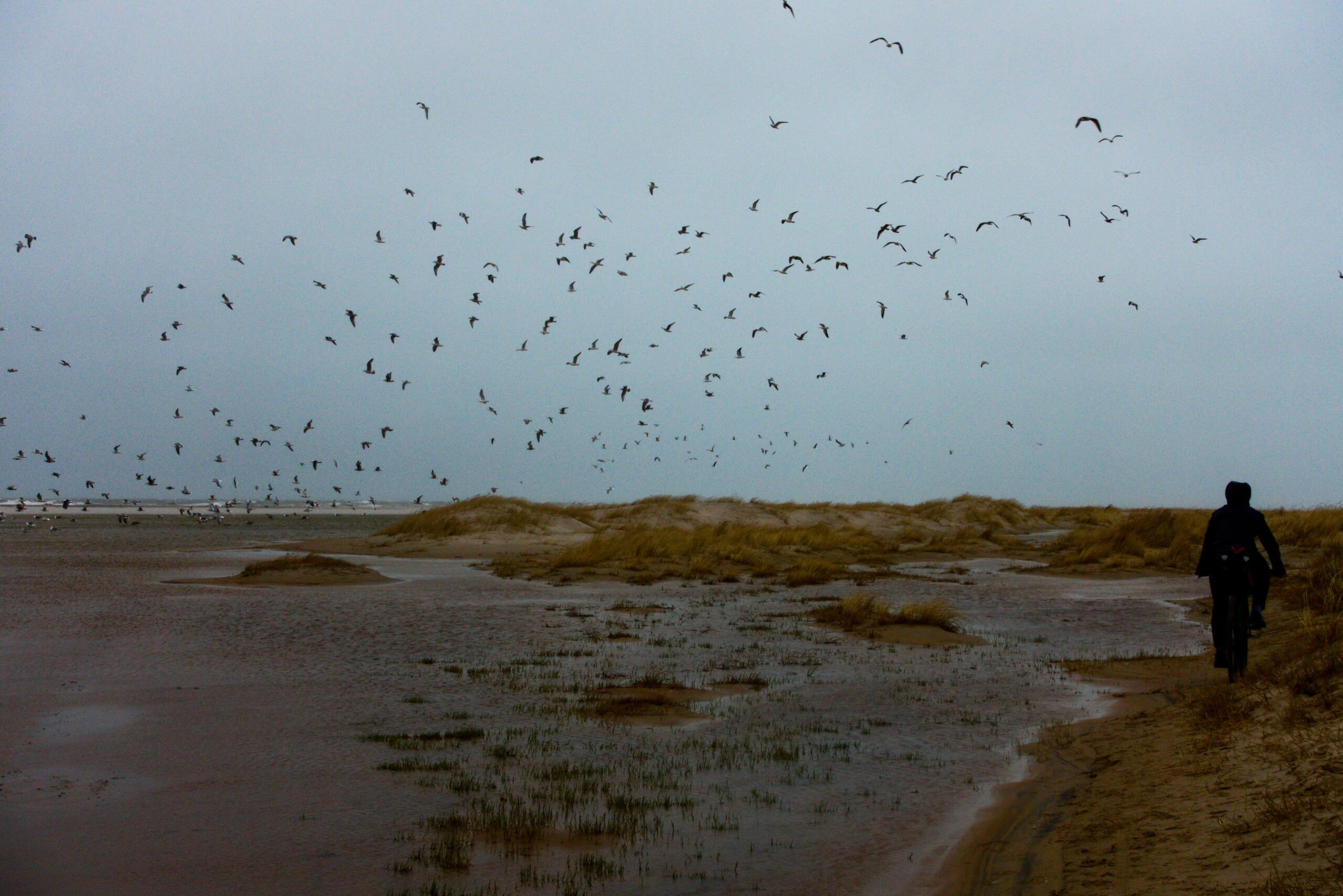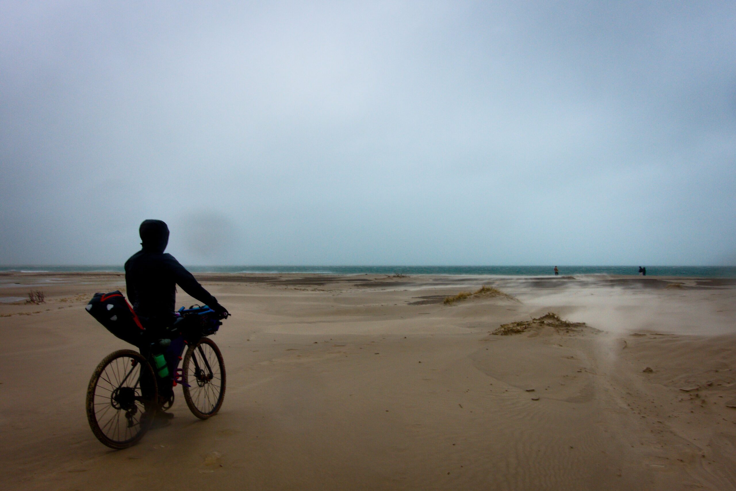 Am beschaulichen Skagen vorbei und zum nördlichsten Punkt Dänemarks geht es dann über sandige und zum Teil strandige Abschnitte. Sehr schön anzusehen, wenn man nicht grade selbst gesandstrahlt wird. Ziemlich genau an der letzten Strandkuppe fängt dann auch der Regen an, der alsbald zu Eisregen wird. Wir müssen die Augen soweit schließen, dass wir sogar die niedlichen Robben erst einen Tag später auf den Kameraaufnahmen sehen werden. Etwas schade. Um unsere tauben Finger und Füße zu feiern nehmen wir uns spontan eine Unterkunft um für den zweiten Teil der Reise einige Sachen zu waschen und zu trocknen. Eine schöne Abwechslung, welche zusätzlich ermöglicht die durch Instant-Essen aufgebrauchten Vitaminreserven mit frischem Essen aufzufüllen und die Fahrräder in Ruhe zu warten und vom Salzwasser zu befreien. Am folgenden Morgen fällt das Aufstehen aus dem bequemen Bett doch etwas schwer, aber die für den Tag geplanten endlosen Schotterpisten entlang der Küste sind ein hinnehmbarer Trost.