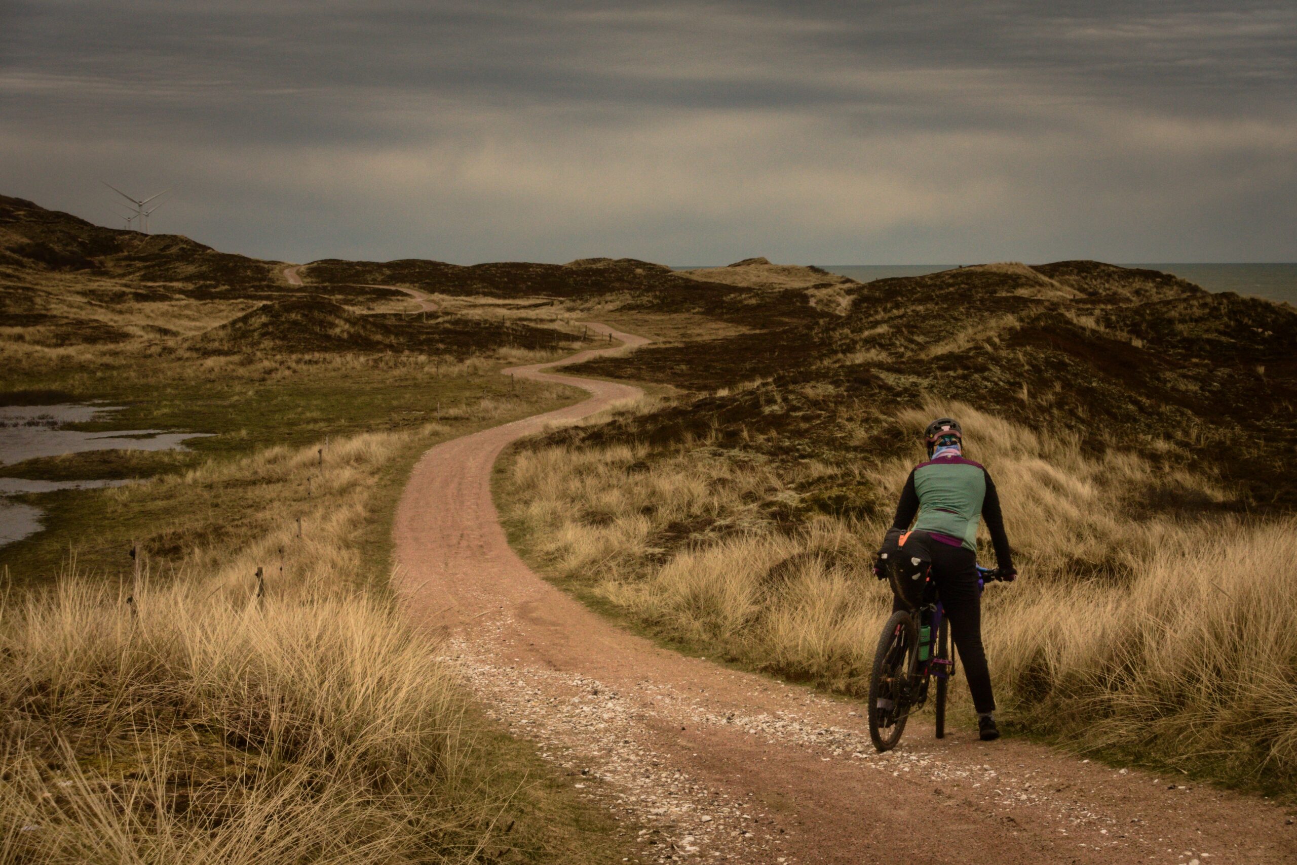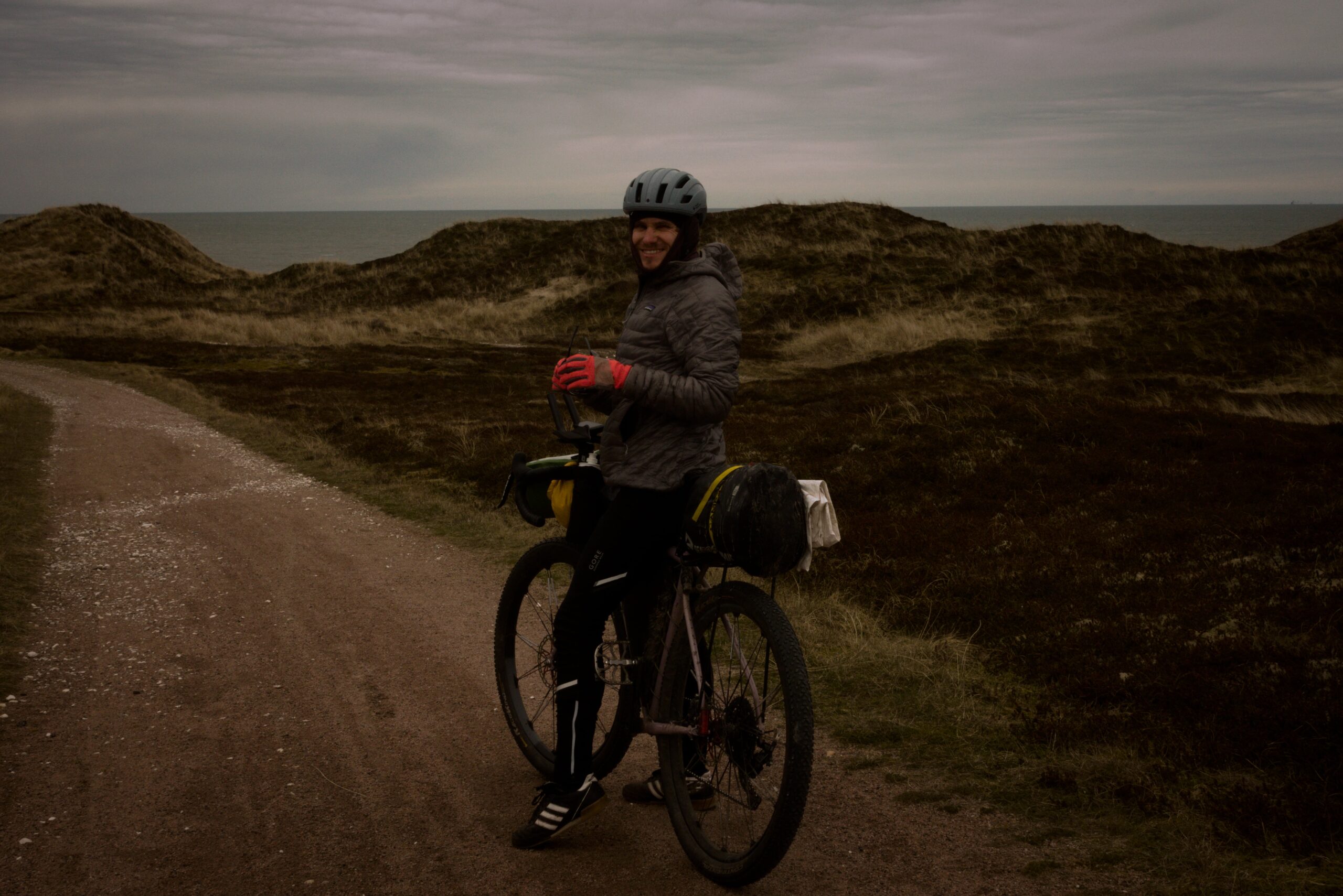 Das zumindest halbwegs sonnige Wetter ändert sich, sobald wir Richtung Skagen und damit an die Nordostküste kommen. Der Gegenwind wird nun doch relativ heftig und ich bin froh über meine einigermaßen aerodynamischen Bikepacking-Taschen. Wer in der Vergangenheit die Freude hatte mit großen Panniersystemen auf einem windigen Deich zu fahren, kennt die Gefühlslage. Wir fahren einen großen Teil des Tages auf Radwegen, welche erst hinter Frederikshavn auf fantastische Schotter-und Waldwege in Küstennähe führen.