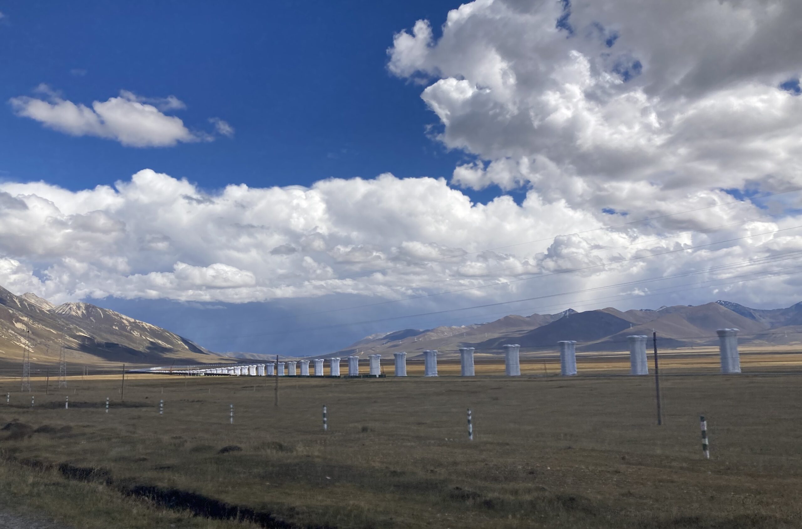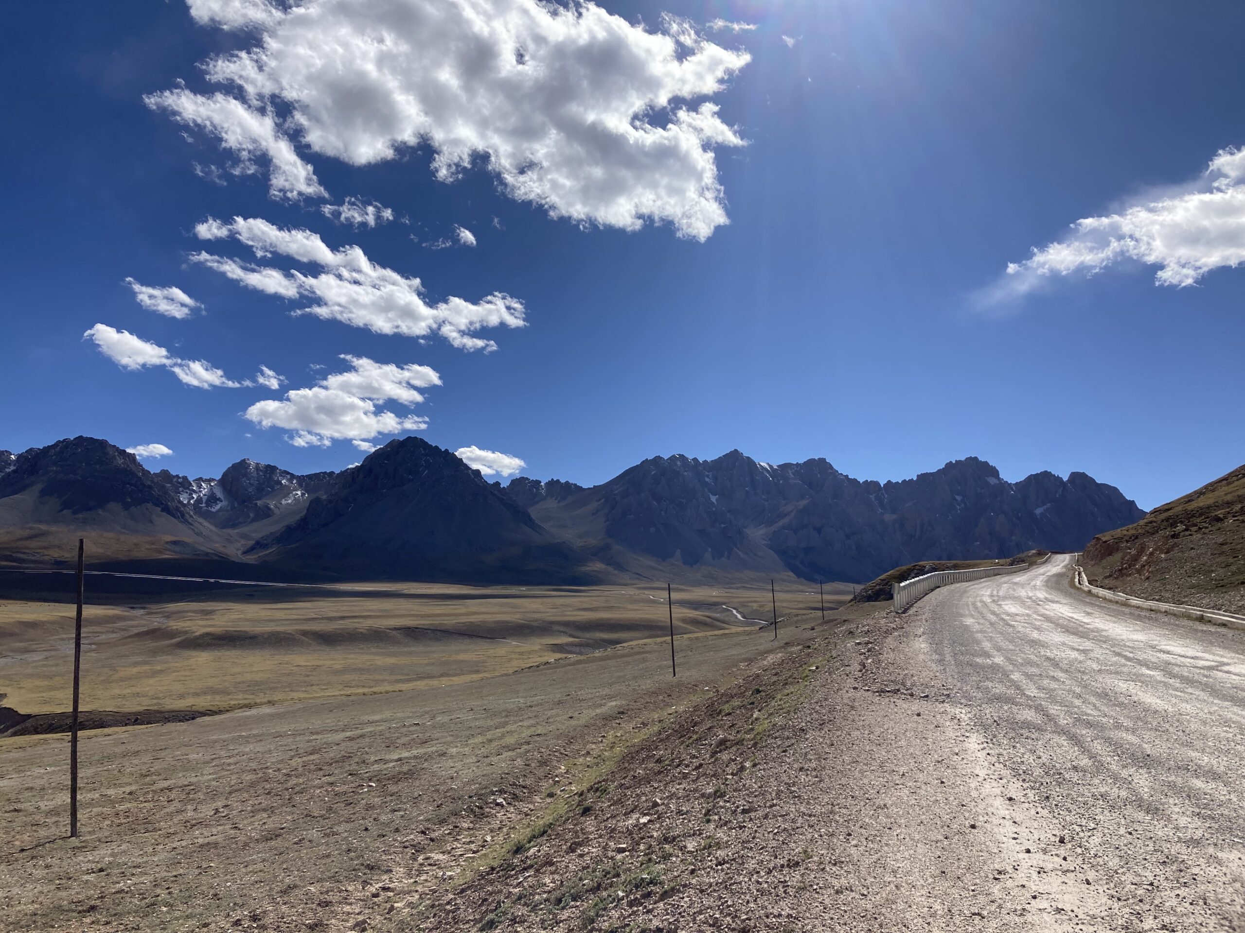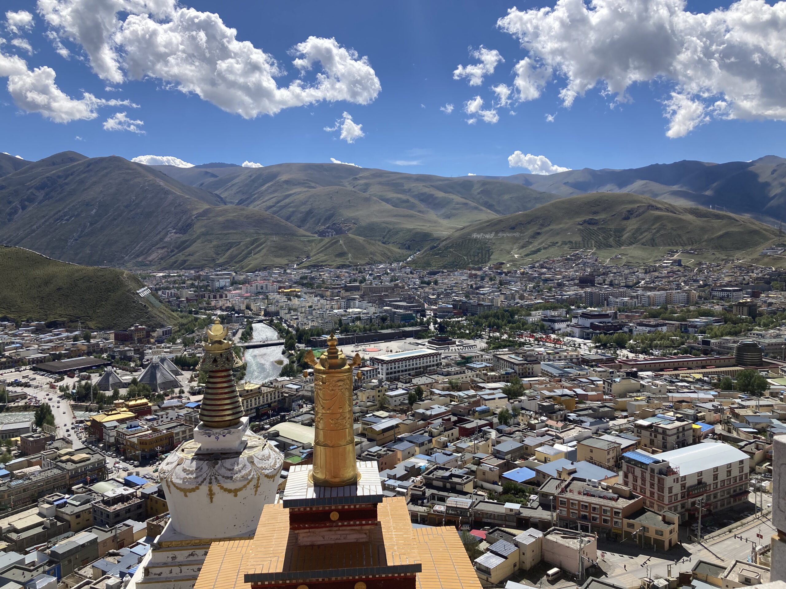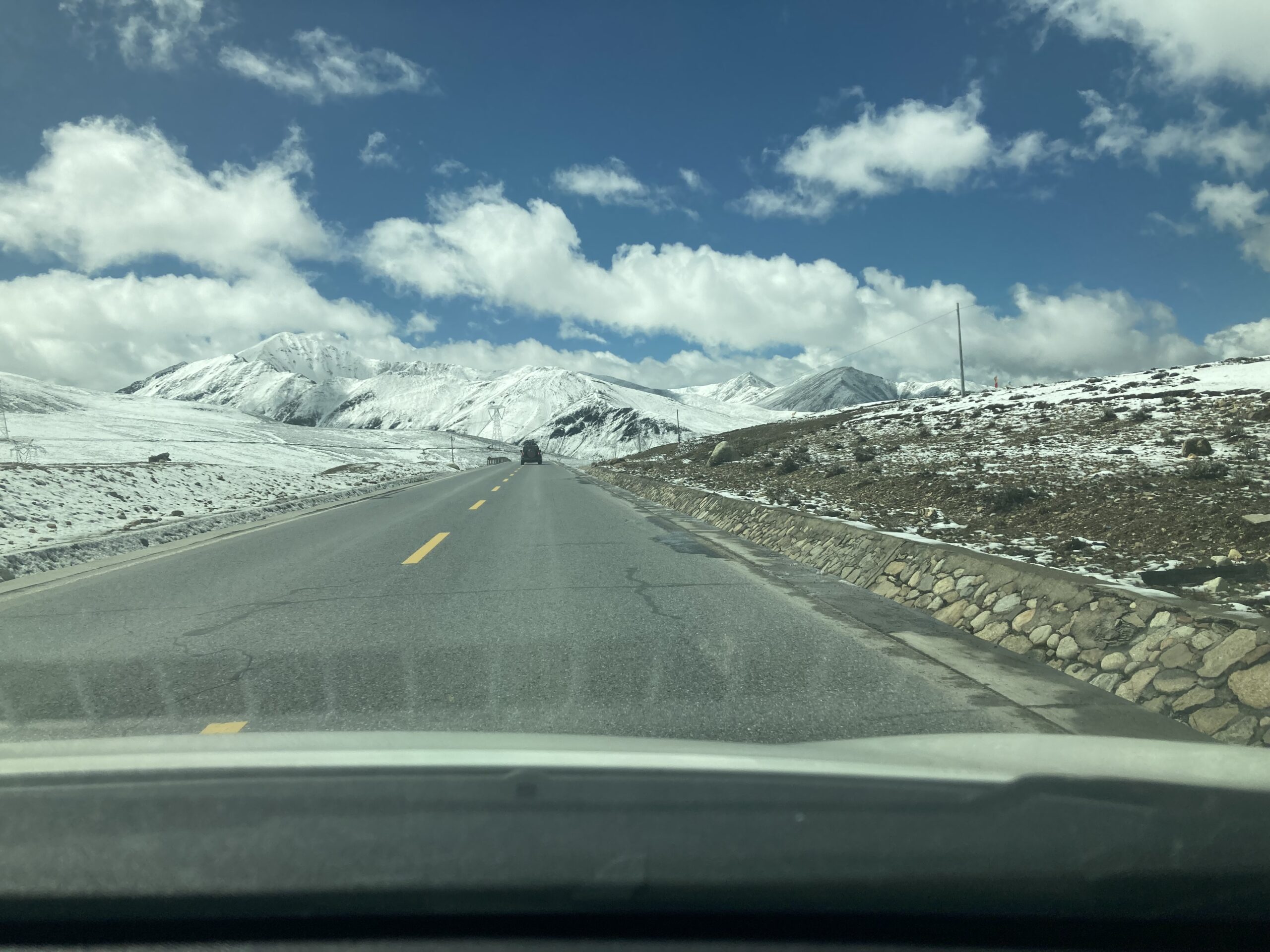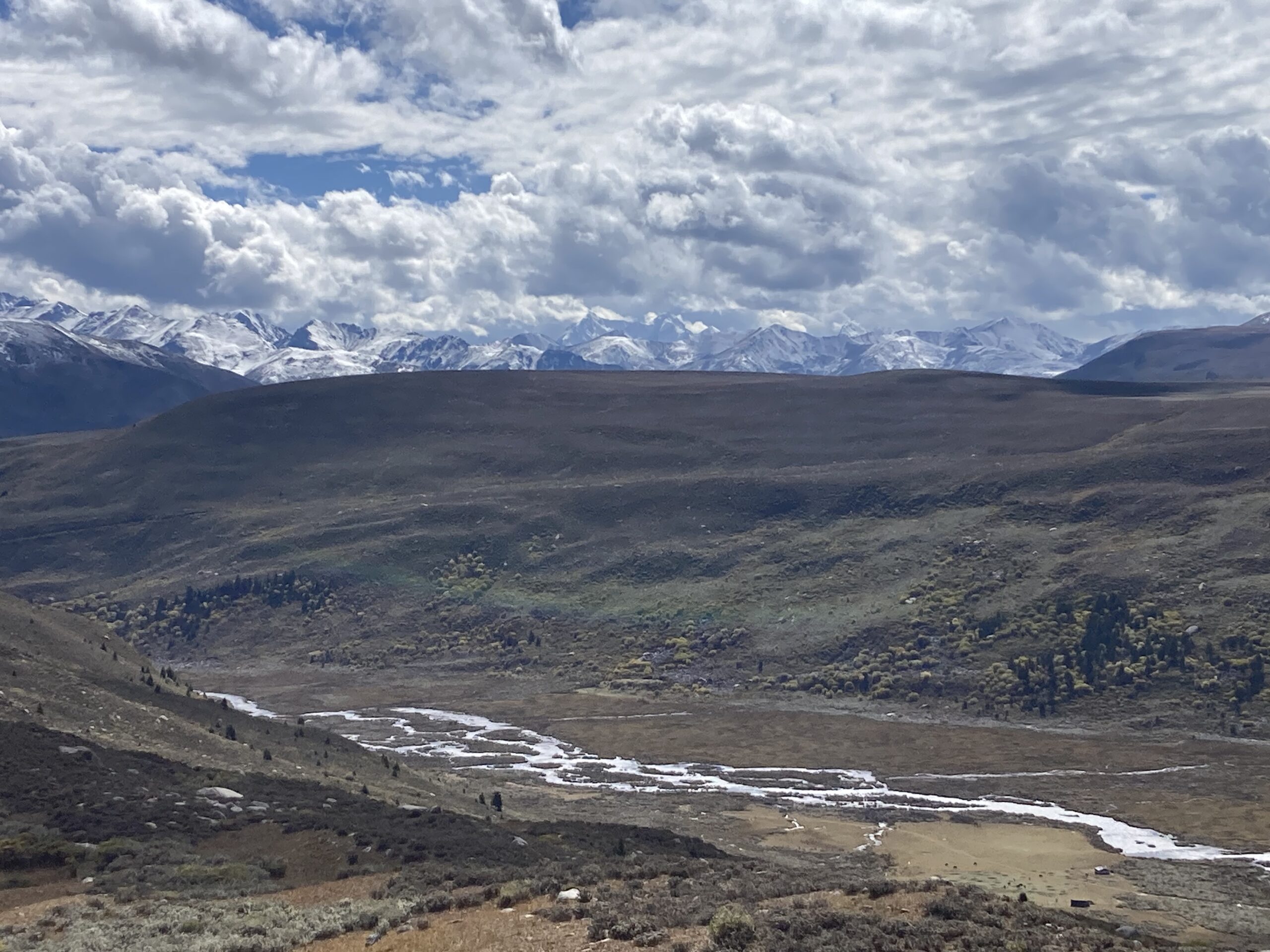 Das nächste Ziel war das Gebiet des Chola Shan und der Weg dahin komplizierter als gedacht, was ich nicht zuletzt mit der Hilfe einer jungen, hilfsbereiten Frau am Busbahnhof von Yushu herausfand. Busse fuhren nicht und ein verabredetes Sammeltaxi holte mich nicht um 5 Uhr früh vor meinem Hotel ab, was aber auch einem Missverständnis geschuldet sein konnte. Ich schlief dann noch ein paar Stunden und nahm dann ein Taxi für ein paar Kilometer bis zu einer Kreuzung, ab welcher der kürzeste Weg nach Ganzi abzweigte. Bloß entpuppte sich dieser als eine einspurige Straße in schlechtem Zustand, also folgte ich trampend einer anderen, vorerst parallel zu einer neuen Autobahn Verlaufenden und dann nach Osten Abbiegenden. Das Fortkommen gelang in Etappen per Daumen, mit Kleinbussen und Sammeltaxen, das Plateaupanorama mit einem unglaublich weiten Himmel war wie immer beeindruckend. Vor Ganzi bog die Straße wiederum nach Westen ab und ein junges Paar nahm mich mit zu einem sehr touristisch erschlossenen See mit Blick zum Chola Shan. Dort wurde mir, vielleicht auch wegen des fortgeschrittenen Tages und trotz der Bemühungen meiner neuen Bekannten, das Wandern jenseits des eingezäunten Bereiches untersagt.