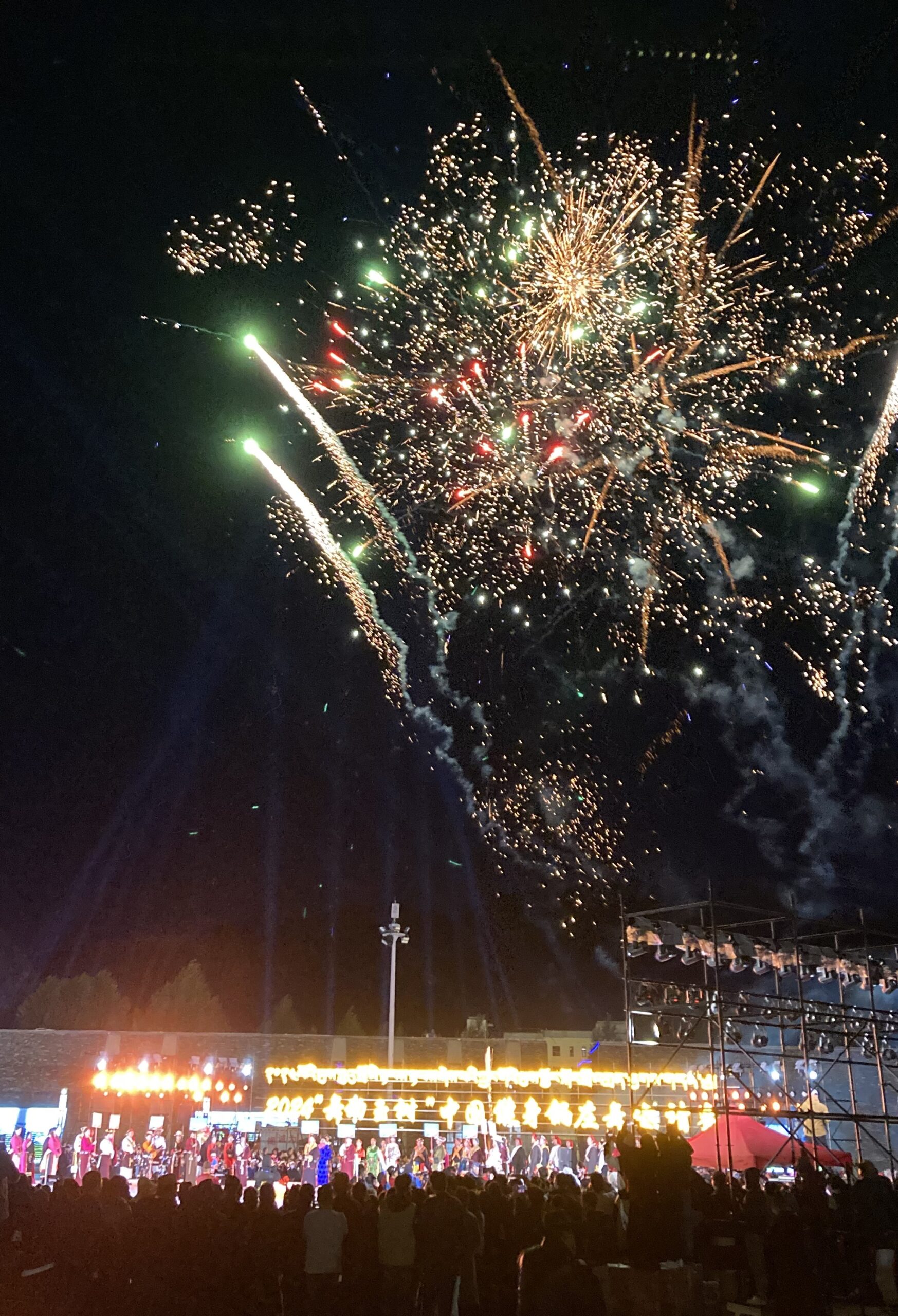 Mit dem stromgetriebenen Bus begab ich mich vom Flugplatz in die Stadt. Etwas niedriger als der Airport auf ungefähr 3500m Höhe gelegen hatte sich der Ort bereits bei einer vorherigen Reise als ganz guter Platz zum Akklimatisieren für Touren in die Bergwelt des tibetischen Plateaus bewährt(das Plateau erstreckt sich über die Grenzen der Provinz Xizang(Tibet) hinaus nach Qinghai, Xinjiang, Sichuan und Yunnan). Yushu wurde bei einem Erdbeben 2010 beinahe komplett zerstört und danach neu erbaut. Nein, nicht (nur) mit massiven Betonklötzen, sondern gerade im Gebiet der Altstadt wurde sich an traditionell tibetischer Architektur, auch bei der Wahl des Materials, orientiert. Ich suchte mein Quartier auf und begann mit längeren und kürzeren Wanderungen, hinauf zum Kloster, durch das Örtchen und seine Umgebung. Höhepunkt meines Aufenthaltes in Yushu war ohne Frage ein tibetisches Tanz- und Musikfestival, vor allem wegen eines grandiosen Feuerwerks.
