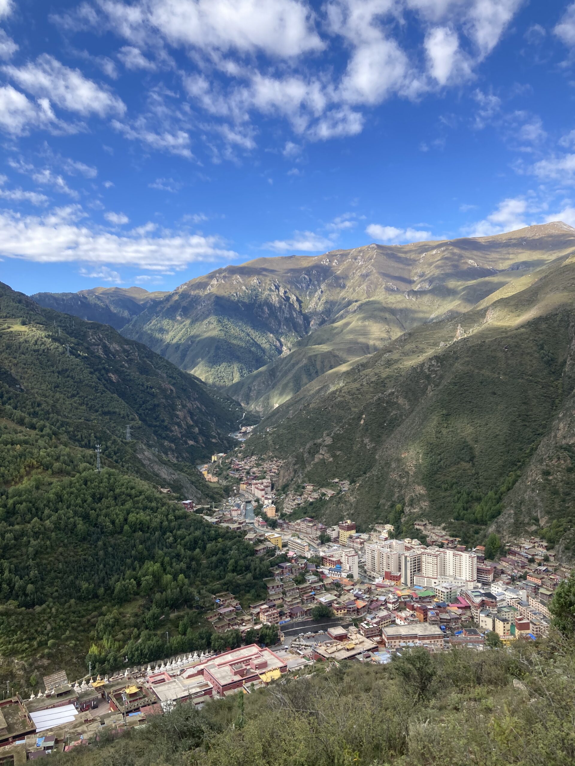 Von Kangding aus beabsichtigte ich einmal mehr entlang des Minya-Konka-Massivs zu wandern. Dies scheiterte an einem Schlagbaum, der nicht von staatlichen Organen sondern Zivilisten betreut wurde. Man verlangte eine polizeiliche Registrierung. Ich begab mich also zurück nach Kangding zum örtlichen Public Security Bureau, wo mir auch irgendwann geholfen wurde, nachdem sehr lange niemand zuständig war, oder sie mich versuchten zu anderen Stellen wie dem Tourismusbüro zu schicken. Mit der Registrierung ging es also zurück zum Schlagbaum, wo in Folge der junge Mann mit seinem Boss – wer auch immer dies war – hin- und herkommunizierte, ich mein Anliegen, meine Erfahrung, meine Ausrüstung immer wieder vorbrachte, bis final vom Boss das Nein kam. (Hintergrund der Sache sind einige Todesfälle der letzten Jahre, eine Folge des zunehmenden Tourismus in dieser Gegend. Und die Zugänge werden von Einheimischen bzw. lokaler Selbstverwaltung kontrolliert.) Der junge Mann riet mir, von Süden in das Gebiet einzuwandern, weil es dort keine Kontrollen geben würde. Nichtsdestotrotz war ich sehr frustriert und fuhr zurück nach Kangding ins Hotel, nicht ohne zuvor ein Fläschchen Schnaps zu erstehen. Im Stadtbus sprach mich eine Schülerin in durchaus passablem Englisch an (alle lernen Englisch in der Schule ab der dritten Klasse, bloß trauen sich nur die wenigsten es zu sprechen), sie war aufgeschlossen und neugierig und vor ihrem Ausstieg wollte sie noch meine Wechat-Nummer haben, die ich ihr selbstverständlich auch gab.