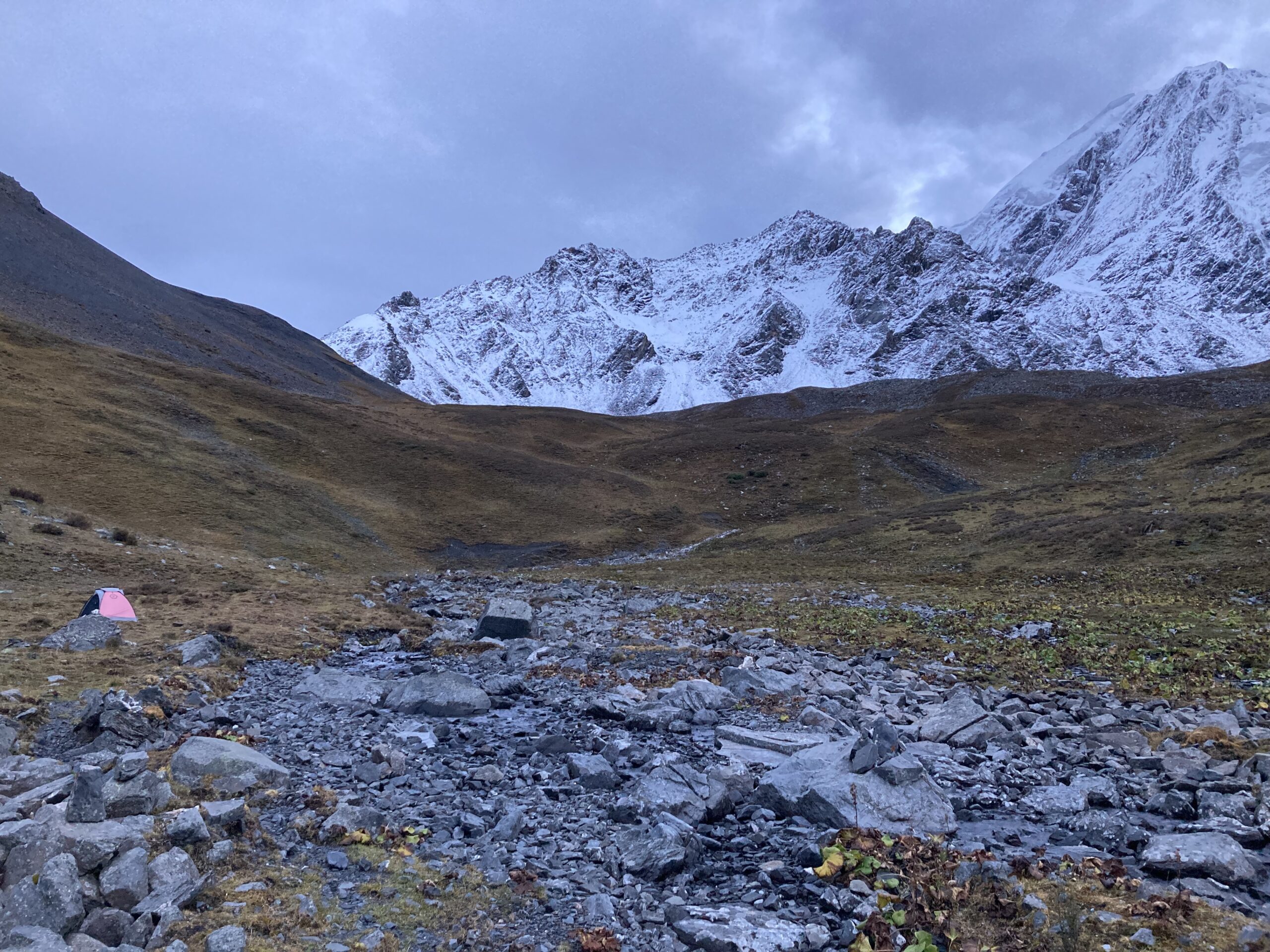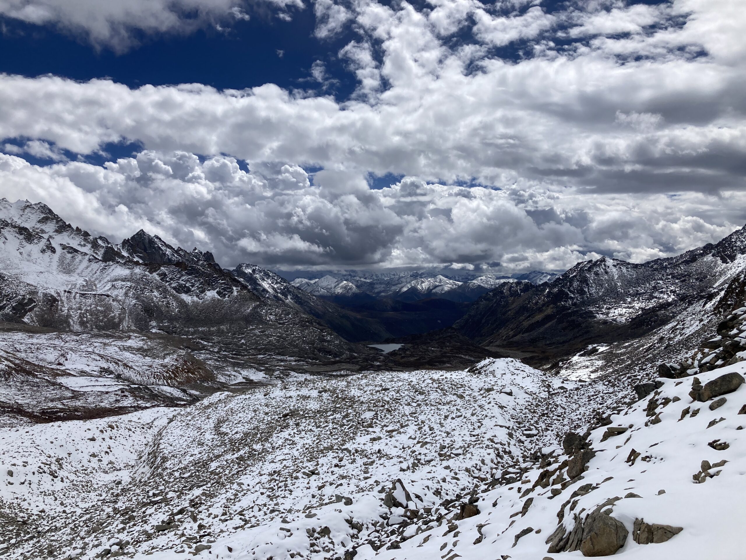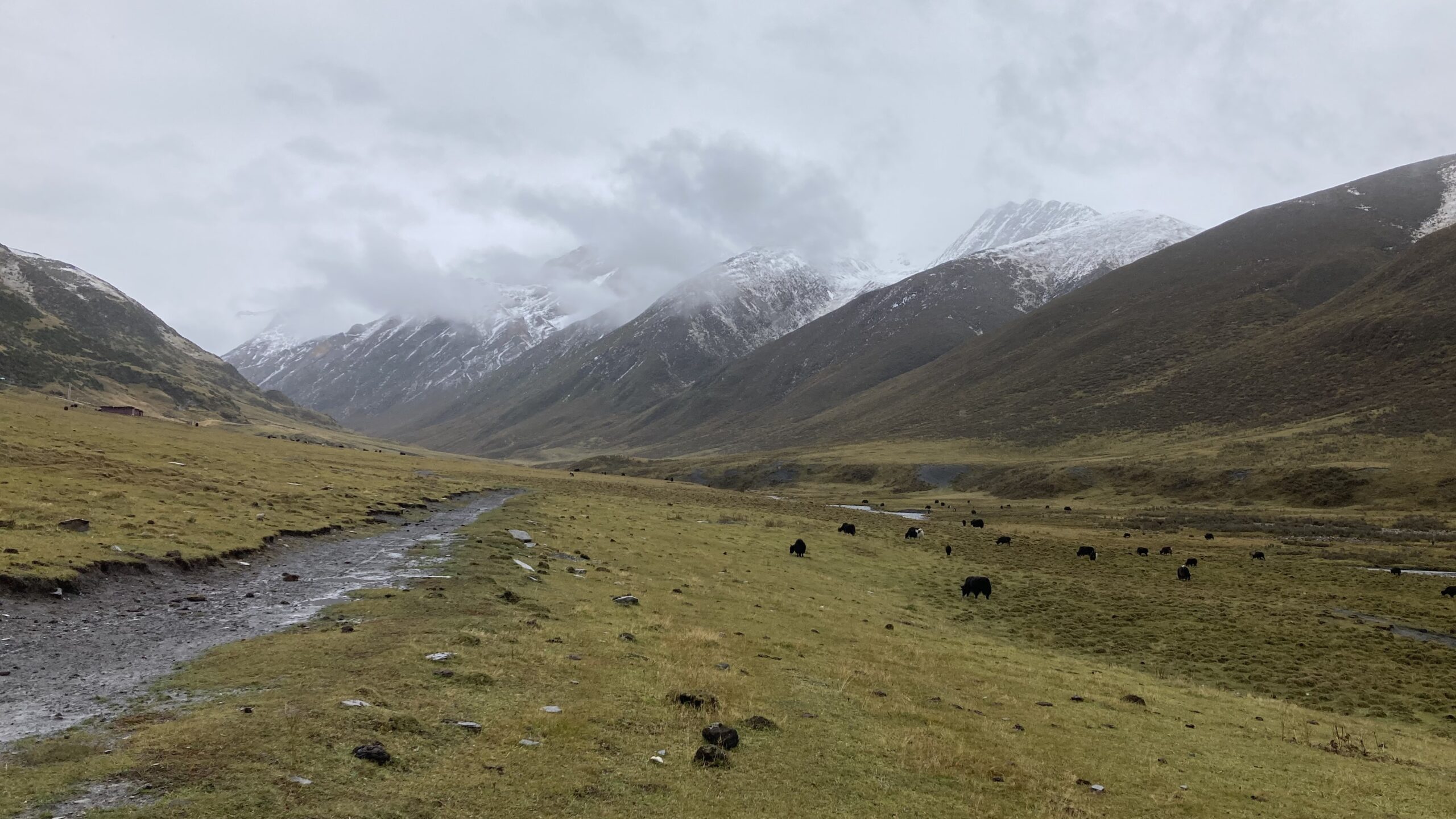 Am nächsten Tag, bei strömendem Regen, saß ich im Bus nach Ganzi, ein mir ebenfalls schon bekannter Ort. Ich nahm mir ein Taxi für ein paar Kilometer und befand mich am Startpunkt einer weiteren Tour am Kawarori-Massiv (https://www.camp4.de/blog/reiseberichte/reisebericht-in-den-bergen-sichuans/), auf etwas anderen als bekannten Pfaden. Das Wetter blieb durchwachsen, ich kampierte unweit eines Passes, und brach gen Mittag, als es aufzuklaren schien, auf. Doch entweder war ich zu langsam oder ich täuschte mich am Wolkenbild – jedenfalls fand ich mich auf der Passhöhe inmitten eines Gewitters wieder. Ich kauerte mich hin und das Gewitter zog über mir hinweg ohne dass ich vom Blitz getroffen wurde. Lang war der schneevermatschte Weg durch Geröllfelder ins Tal, zudem war die Orientierung in den Wolken nicht leicht, Wege gab es selbstverständlich nicht. Nach ein paar Stunden hatte ich es aber geschafft und fand mich auf einem Weg entlang eines Flusses wieder. Das Wetter blieb nasskalt und am nächsten Tag erreichte ich die Straße und war schon bald auf dem Weg nach Litang, ein weiterer mir nicht unbekannter Ort, der bei meiner letzten Reise hier Kreuzungspunkt verschiedener Touren war.