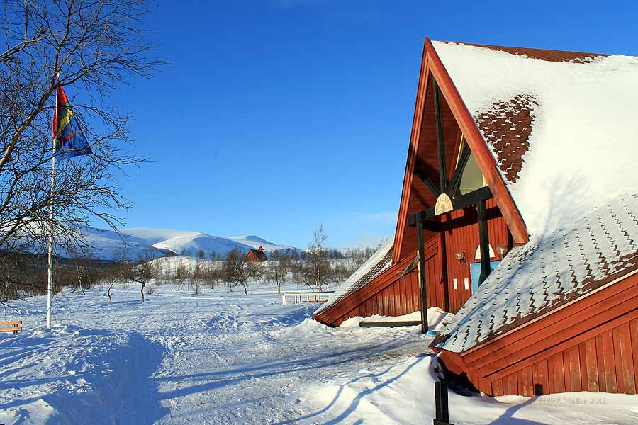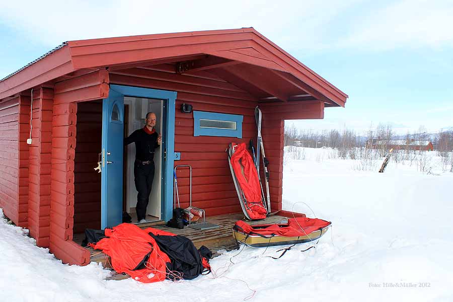 Die kleine Siedlung Nikkaluokta ist einer der Ausgangspunkte für Wanderungen auf dem nördlichen Kungsleden und ins Kebnekaisegebiet und hat sich mit der von einer Sami-Familie geführten Hüttenanlage stilvoll darauf eingestellt. Wir mieten eine liebevoll eingerichtete „Charmig Stuga“ und sind dabei, unsere Ausrüstung – noch im Fluggepäckformat – in tourenpraktische Funktionseinheiten aufzuteilen, als uns ein norwegischer Hüttennachbar türklopfend auf den inzwischen von Polarlicht- und Huskygeheul-durchwobenen Sternenhimmel aufmerksam macht.