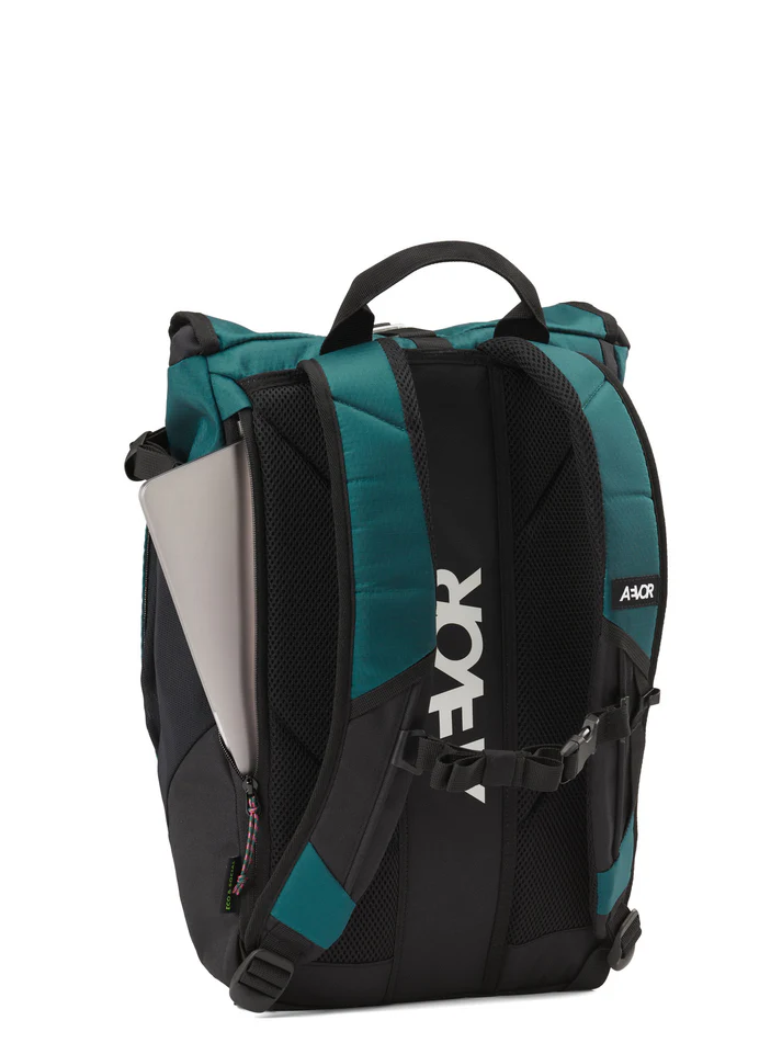 Der Rucksack verfügt über ein Laptopfach, Flaschenfächer, wasserabweisendes Material mit einer hohen Wassersäule und ein verdecktes Reißverschlussfach für sichere Aufbewahrung von Geldbörse oder Handy. Alle AEVOR Produkte stehen für faire Produktion und nachhaltige Materialien, was durch bluesign®-zertifizierte Stoffe und den Fair Wear Leader Status bestätigt wird.