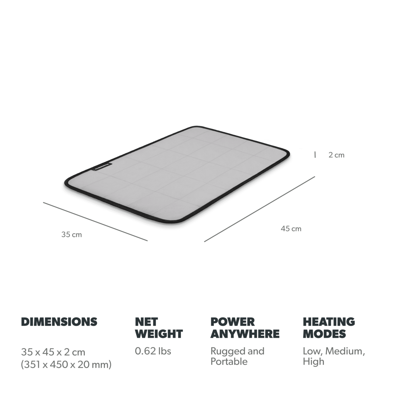 - Aus strapazierfähigem, wasserabweisendem Gewebe; effiziente Heizelemente mit Kupferdraht