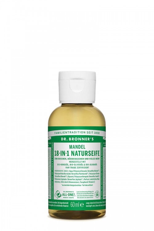 Dr. Bronner's 18-in-1 Naturseifen: Die verseiften Öle reinigen schonend und natürlich, ohne zu fetten, und sind aus kontrolliert biologischem Anbau nach dem „National Organic Standards“-Programm zertifiziert. Die Seifen sind biologisch abbaubar, vegan und werden in Flaschen aus zu 100% recyceltem Plastik abgefüllt. Außerdem sind sie frei von synthetischen Schaumbildnern, Verdickungsmitteln und Konservierungsstoffen.