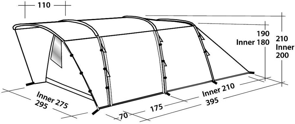 • Familien-Tunnelzelt mit großem Wohnbereich und regengeschütztem Vordereingang