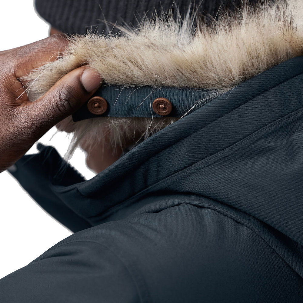 • Kapuzenmerkmale: Abnehmbares Fell, Tunnelzug, Kunstfell