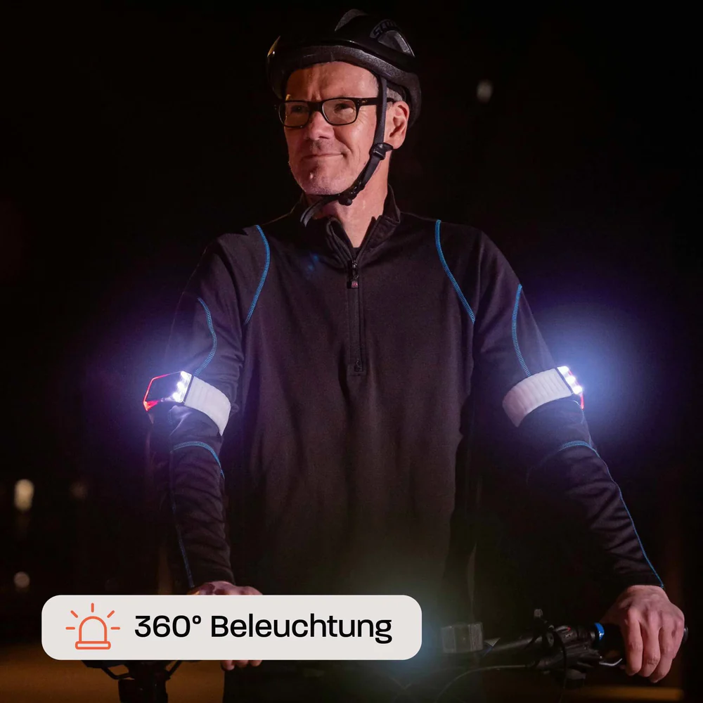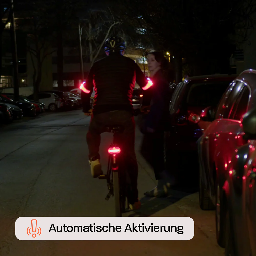 Die Armbänder sind StVO-konform in Deutschland, Österreich und der Schweiz und erfüllen die relevanten EU-Richtlinien. So bist du sicher unterwegs – legal und mit smarter Technologie.