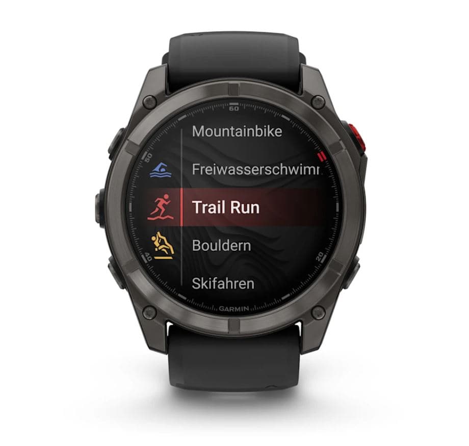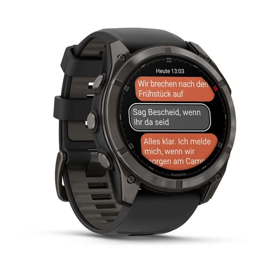 Die fēnix® 8 Pro Multisport GPS-Smartwatch ist das Nonplusultra für ambitionierte Läuferinnen, Kletternde, Wassersportlerinnen und alle, die auch bei Aktivitäten erreichbar bleiben wollen, bei denen ein Smartphone stört.