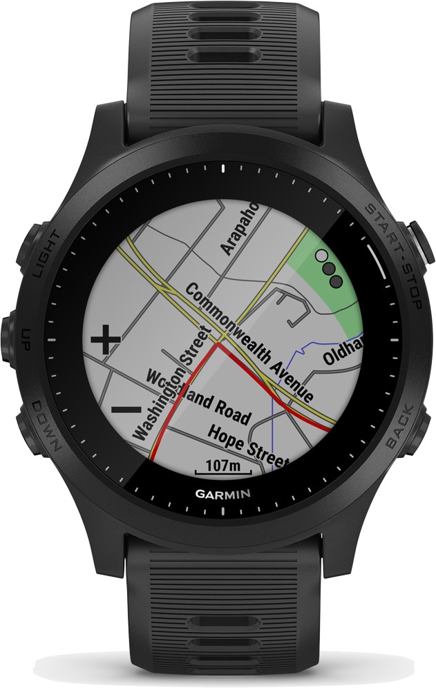 Der Forerunner 945 mag zwar ein Leichtgewicht sein, an Funktionen wurde jedoch nicht gespart. Das Gerät unterstützt den Satellitenempfang mehrerer Netzwerke (GPS, GLONASS und Galileo), um in schwierigen Umgebungen eine bessere Ortung zu bieten als bei ausschließlicher Verwendung von GPS. Außerdem bietet es die Herzfrequenzmessung am Handgelenk und einen Pulsoximetersensor am Handgelenk, der die Sauerstoffsättigung des Bluts für eine erweiterte Schlafüberwachung und die Höhenakklimatisierung misst.