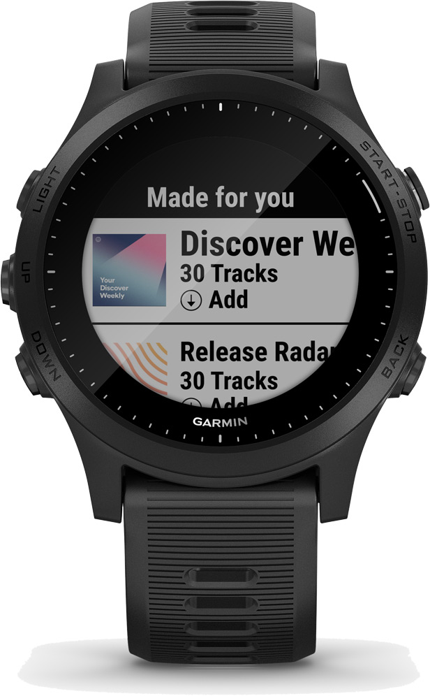 Nimm deine Lieblingsmusik einfach mit. Synchronisiere deine sorgsam zusammengestellten Playlisten von bestimmten Premium-Streaming-Musikservices (Bei Kopplung mit einem kompatiblen Smartphone, ggf. ist ein Premium-Abonnement bei einem Drittanbieter für Musik erforderlich) wie Deezer und Spotify®, um werbefrei Musik zu hören. Du kannst bis zu 1.000 Songs direkt auf der Uhr speichern und Musik außerdem aus deiner Computerbibliothek übertragen. Wähle dann deine Lieblingsplaylist aus, verbinde deine Bluetooth-Kopfhörer und los geht's!