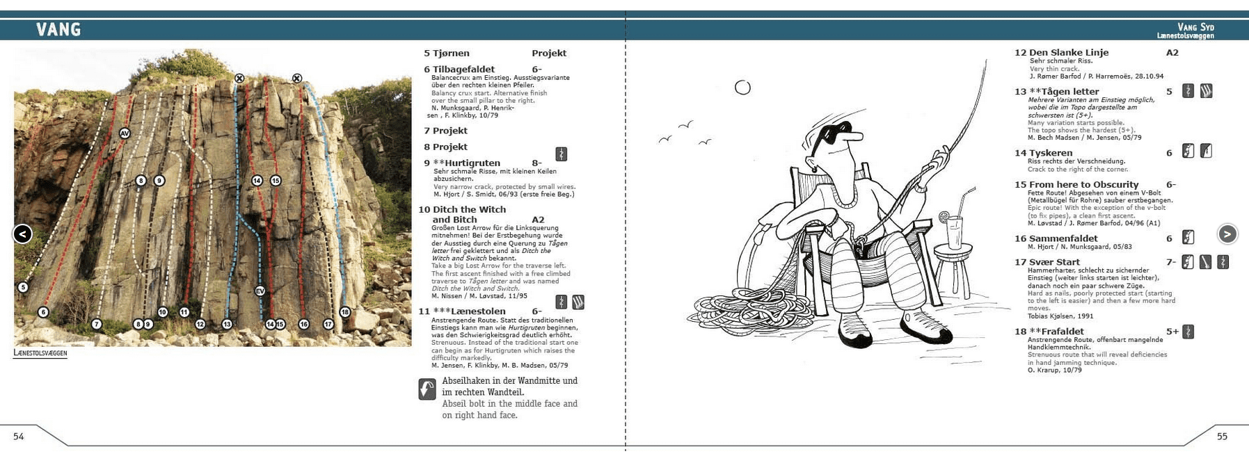 Der zweisprachige Kletterführer Bornholm stellt die tollen Klettermöglichkeiten auf der dänischen Insel vor. In bestem Granit kannst du dort dem Sportklettern oder dem Tradklettern frönen. Der Kletterführer enthält nach dem Konzept der "Kletter-Reise-Führer" von Geoquest auch Informationen abseits des Kletterns: Reisemöglichkeiten, Geologie, etc.