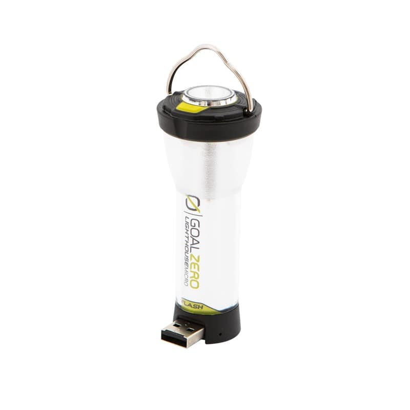 Die Lighthouse Micro Flash von GoalZero bringt Licht ins Dunkel über Taschenlampen oder Laternenfunktion.Du kannst die Lampe über ein passendes Solarpanel laden (mit dem Nomad7 dauert es etwa 3,5 h) oder die Ladung über USB-Anschluss vornehmen.