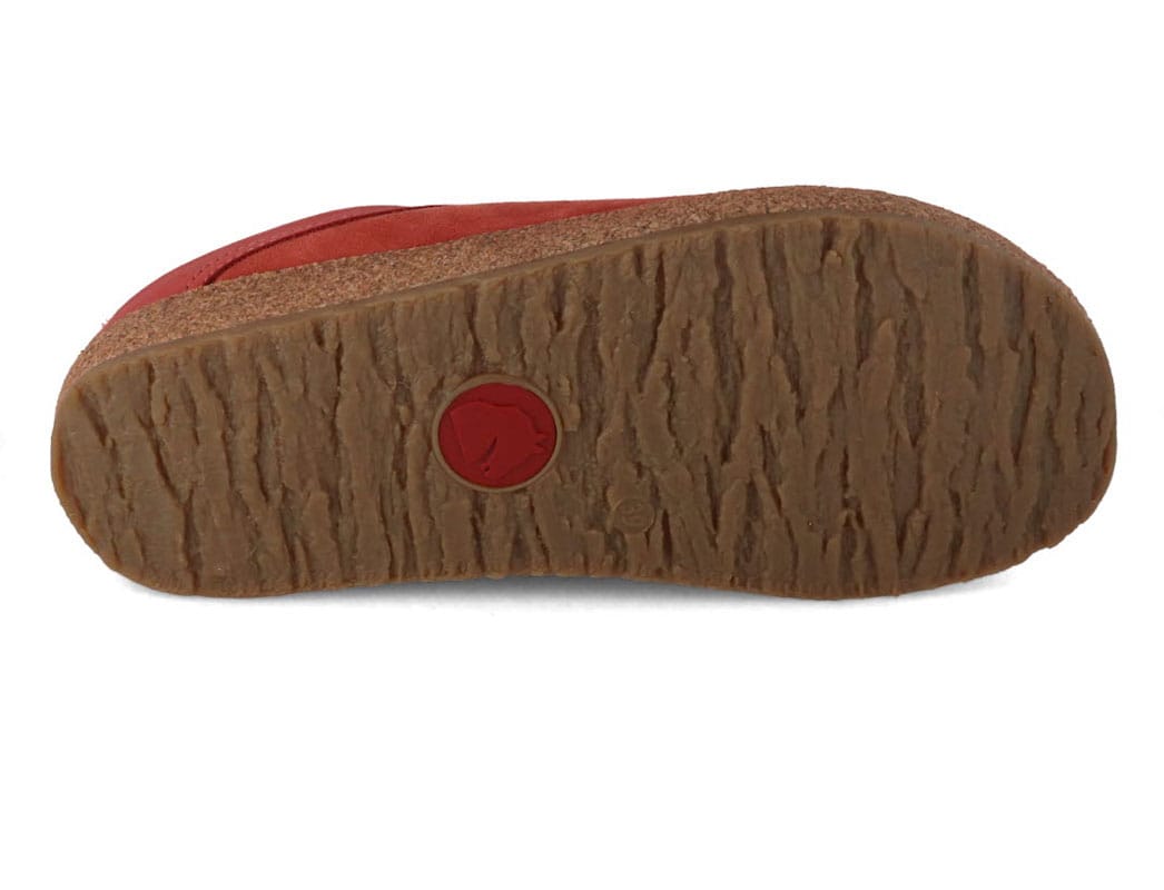 Die Fußgesundheit wird durch das anatomisch geformteKork-Latex-Fußbett und durch den Zehengriff, welcher für eine optimale Führung der Zehen, eine sanfte und natürliche Abrollbewegung ermöglicht, unterstützt. Die Robustheit der Laufsohle und das rutschfeste Thermogummi weist Feuchtigkeit und Schmutz ab. Der Einschlupf ist mit einem dekorativen Lederband verziert, das gleichzeitig die Stabilität der Lammfell Hausschuhe erhöht.