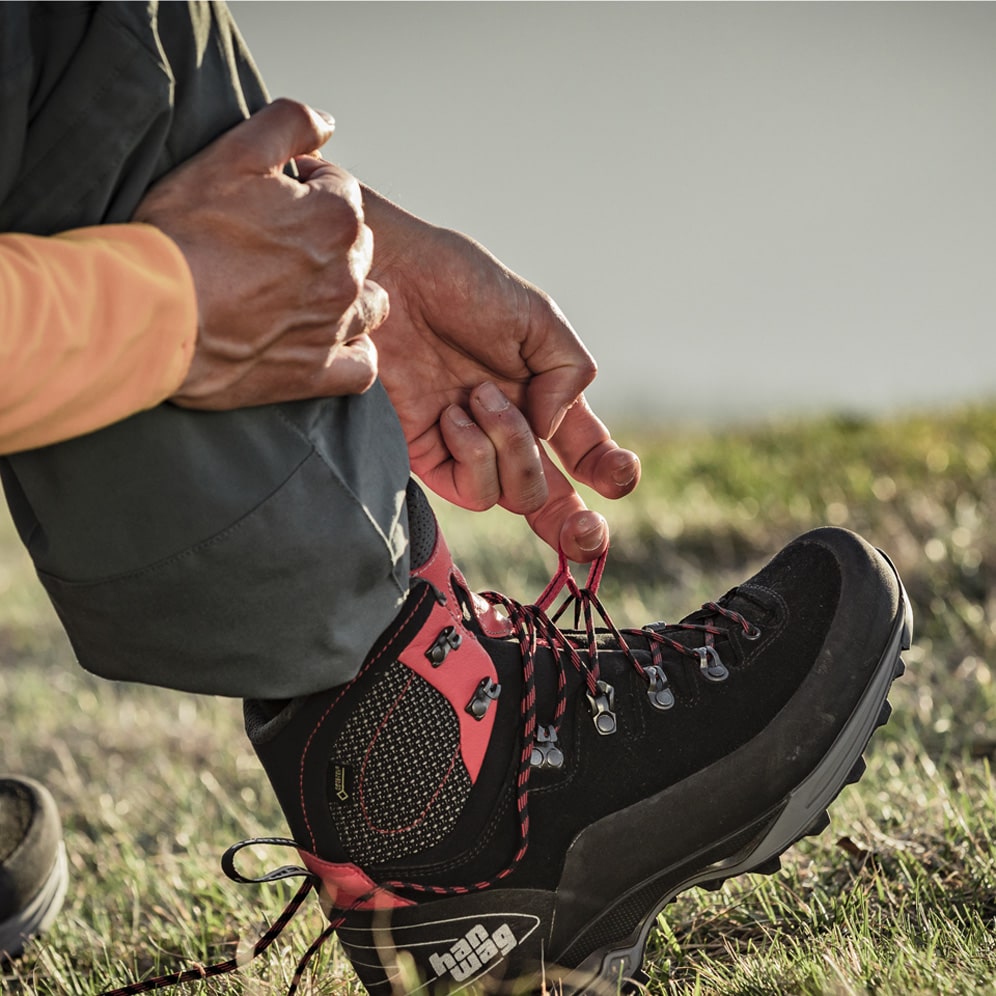 Der Volllederschaft aus dickem, hochwertigem Perwanger Spaltleder, Gore-Tex Membran und die bewährte Hanwag Passform mit modernen Technologien, wie der Hanwag LFX (Lateral Flex) Technologie und Click-Clamps für Zweizonen-Schnürung plus eine Schlaufe zur leichteren Öffnung der Schnürung, machen den Alverstone II GTX robust, komfortabel und wasserdicht.
