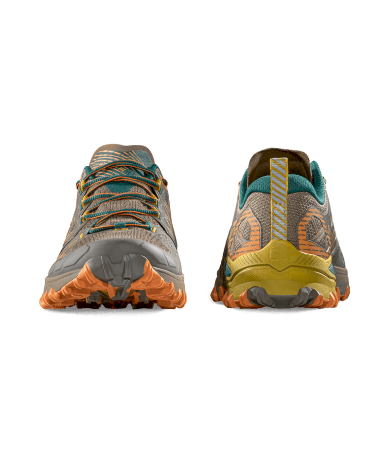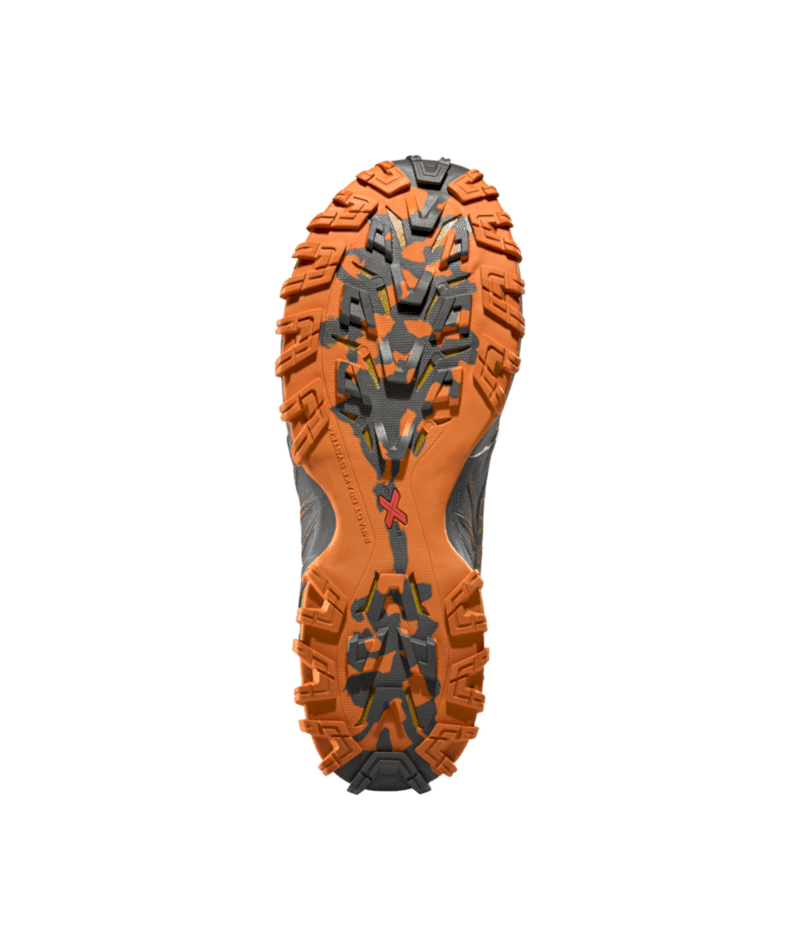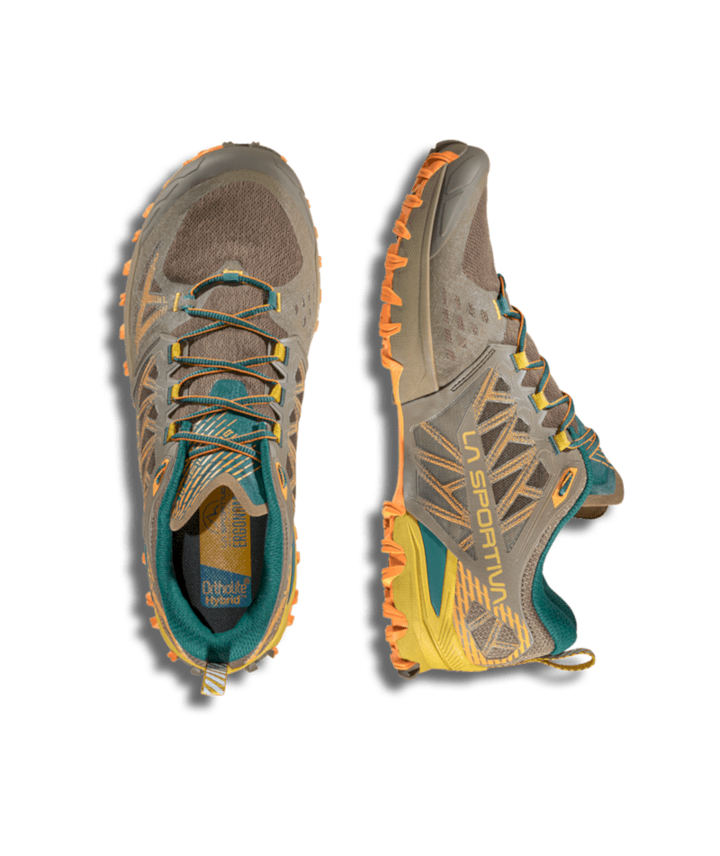 Die FriXion® Red Bi-Compound Sohle mit IBS-Seitenstollen sorgt für exzellenten Grip, und das Impact Brake System Mountain Running® ermöglicht sicheres Bremsen bei Bergabpassagen. Die EVA-Midsole mit Stabilitätsunterstützung und die Ortholite® Hybrid Mountain Running® Ergonomic Einlegesohle (4mm) garantieren Komfort und Dämpfung über lange Strecken. Nachhaltig: 100% recycelte Schnürsenkel, vegan und PFAS-frei.