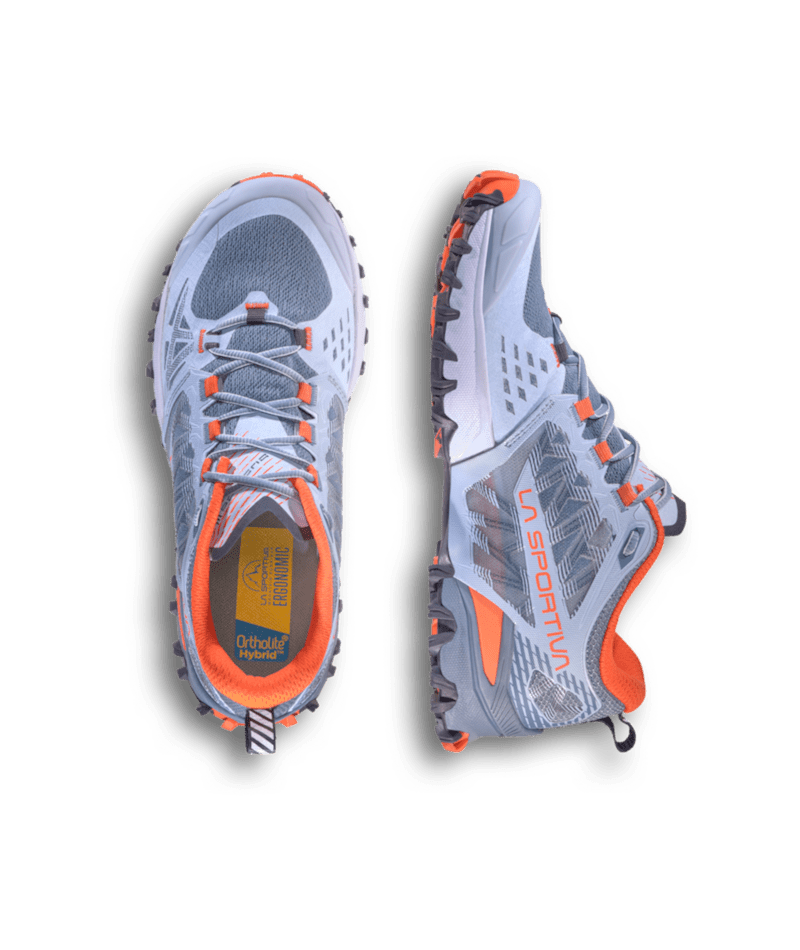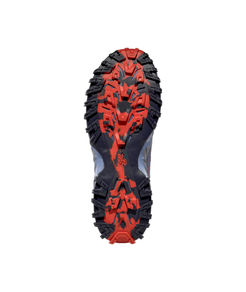 Die FriXion® Red Bi-Compound Sohle mit IBS-Seitenstollen sorgt für sicheren Grip, und das Impact Brake System Mountain Running® garantiert kontrolliertes Bremsen bergab. Die Midsole aus EVA mit Stabilitäts- und Rock Guard-Einsatz bietet Schutz und Dämpfung, unterstützt durch die Ortholite® Hybrid Mountain Running® Ergonomic 4mm Einlegesohle. Nachhaltig: 100% recycelte Schnürsenkel, vegan und PFAS-frei.