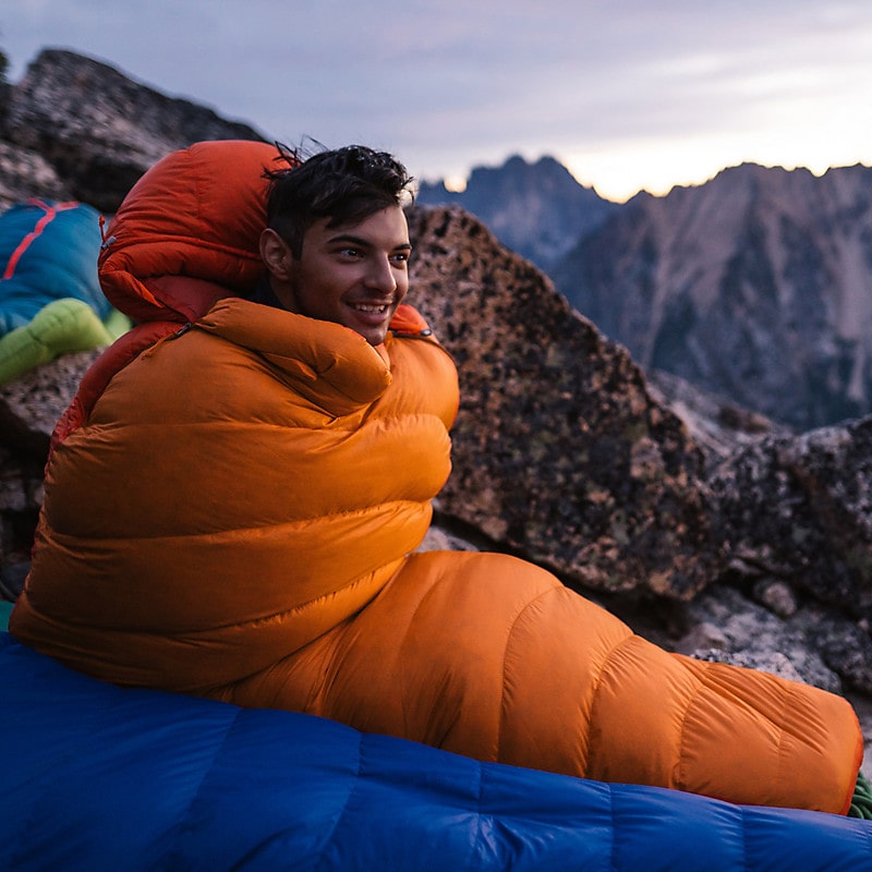 Wärmekragen, Nautilus Kapuze und Wrap-Around Fußbox sorgen an den empfindlichen Stellen für beste Isolation. Ein Fach in der Fußbox kann zusätzlich mit z.B. Wärmekissen oder deiner Flasche mit warmen Wasser bestückt werden. Eine Innentasche für deine Wertgegenstände und Lampe ist ebenfalls vorhanden.