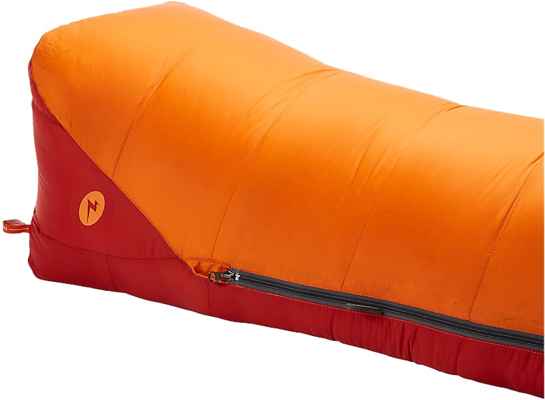 Der Daunenschlafsack Never Summer von Marmot ist durch die Down Defender Imprägnierung recht unempfindlich gegen Feuchtigkeit und isoliert in kalten Frühling-, Herbst- und Winternächten angenehm, damit du regeneriert an nächten Morgen aufwachst.