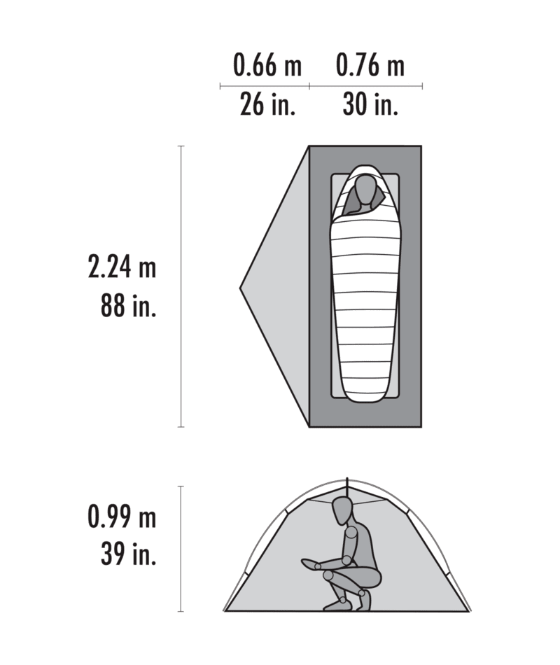 Dank einer Innenfläche von 76 x 224 cm und einem 25-Zoll (63,5 cm) langen Schlafbereich kannst du bequem sitzen, rollen und schlafen. Dein Rucksack passt problemlos mit hinein.