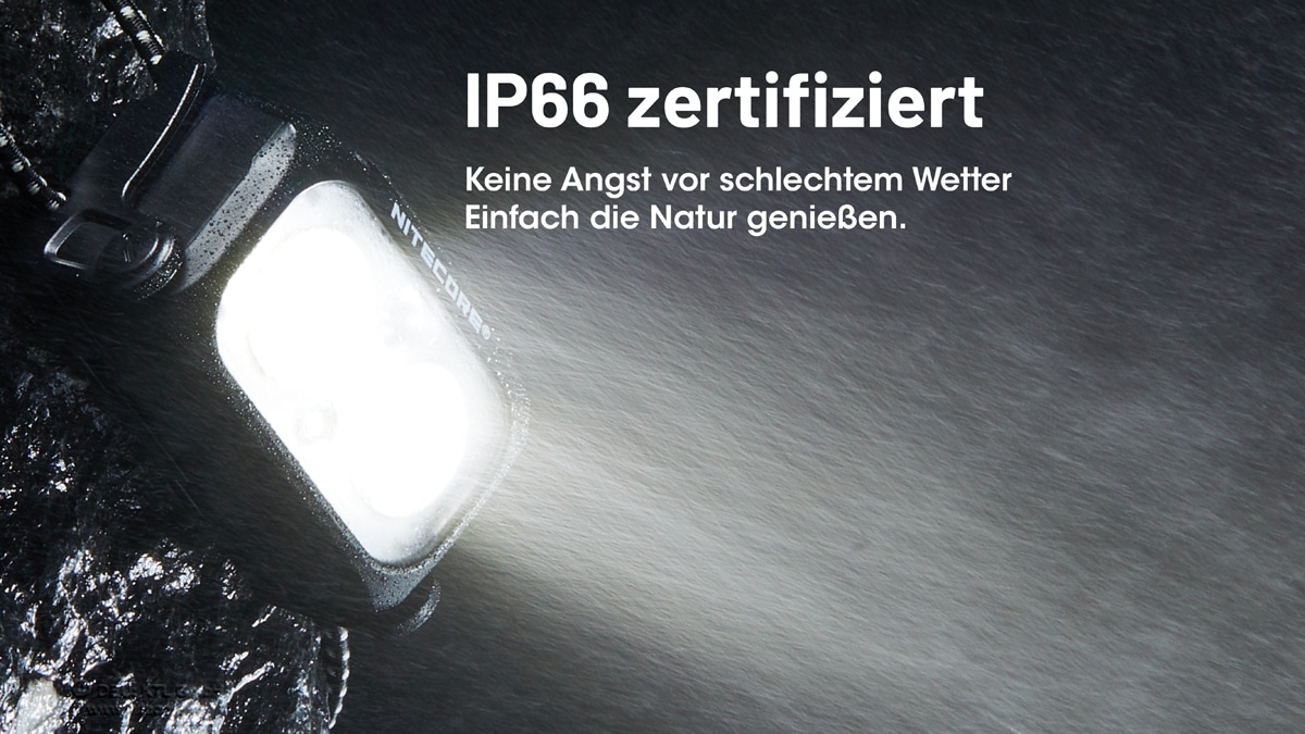 Die NU25 MCT UL besitzt einen integrierten Li-Ion-Akku mit 700 mAh, der über einen USB-C-Anschluss direkt in der Lampe geladen wird. Eine praktische Akkustandanzeige informiert jederzeit über den Ladezustand. Das Gehäuse besteht aus robustem PC-Material und ist nach IP66 wasser- und staubdicht. Für unterwegs lässt sich die Lampe über den Lockout Mode gegen unbeabsichtigtes Einschalten sichern.