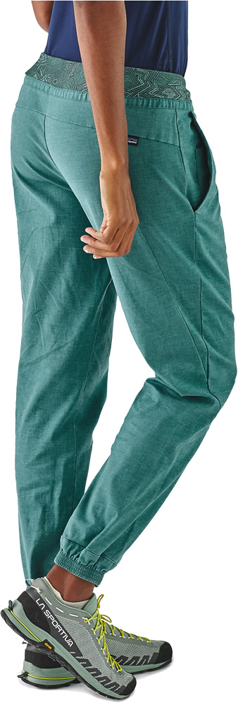 Patagonia hat mit der Women's Hampi Rock Pants eine atmungsaktive und robuste Kletterhose für Damen aus einem Materialmix aus Hanf und recyceltem Polyester. An heißen Tagen kühlt das Gewebe sehr angenehm und der Anteil an Elastan sorgt für viel Bewegungsfreiheit. Der ergonomische Schnitt unterstützt dich bei harten Moves.Der weiche und elastische Bund mit Zugkordel ist unter dem Klettergurt kaum zu spüren. Konisch geschnittene Beine mit Elastikbund lassen freien Blick auf den Fußeinsatz und können für zusätzliche Ventilation hochgeschoben werden. Offene Einschubtaschen mit luftigem Mesheinsatz runden die Kletterhose für Frauen ab. Die Tasche rechts kommt mit einem elastischen Soft-Catch Steckfach für Wertsachen.