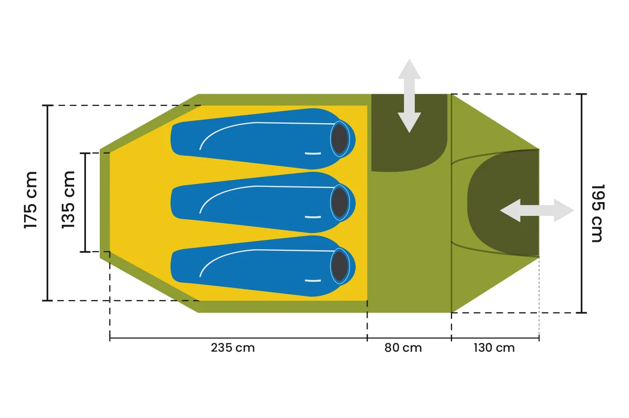 Innenzelt Liegefläche: 235 x 175 x 120 cm (L x B x H)