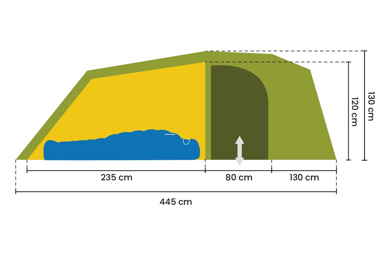 Außenzelt: 445 x 195 x 130 cm (L x B x H)