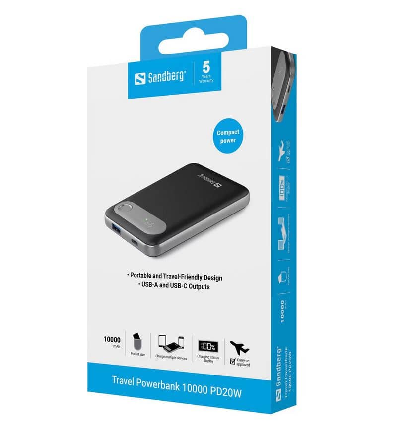 Mit der Sandberg Survivor Power Bank 10000 PD20W bist Du jederzeit bestens ausgestattet nie wieder ein leerer Akku an Deinem Smartphone oder Mobilgerät, selbst wenn keine Steckdose in der Nähe ist. Diese Power Bank lädt Dein Handy bis zu 4 Mal komplett auf. Dank des robusten und wasserdichten Gehäuses begleitet sie Dich zuverlässig bei allen Abenteuern und Outdoor-Aktivitäten.