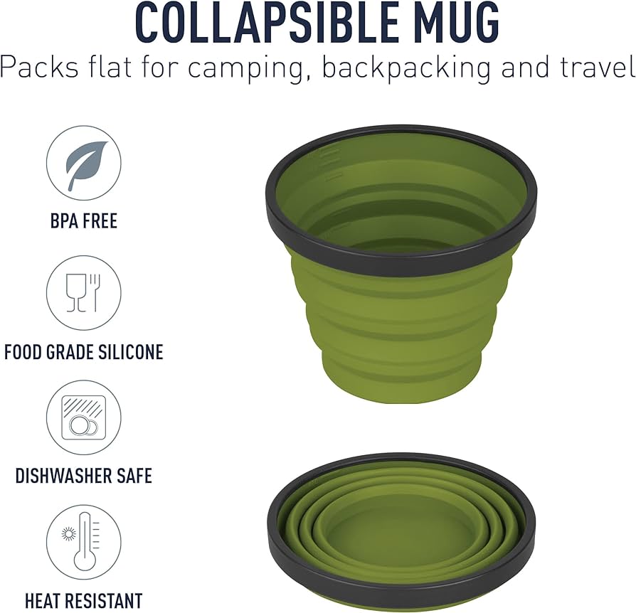 Der X-Mug von Sea to Summit ist ein Faltbecher aus lebensmittelechtem Silikon und Nylon. Formstabil durch versteifte Oberkante. Zusammengeklappt ist der X-Mug sehr kompakt im Rucksack oder anderem Reisegepäck verstaut.