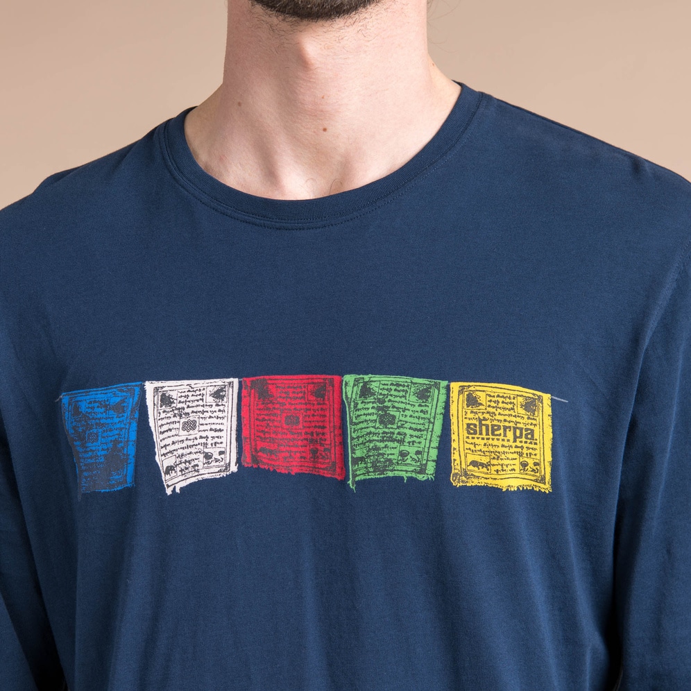 Die stilisierte Gebetsfahne zeigt die kulturellen Hintergründe einer großen Religion. Aber auch das Tarcho Long Sleeve Tee ist groß, nämlich in seinem Tragekomfort.