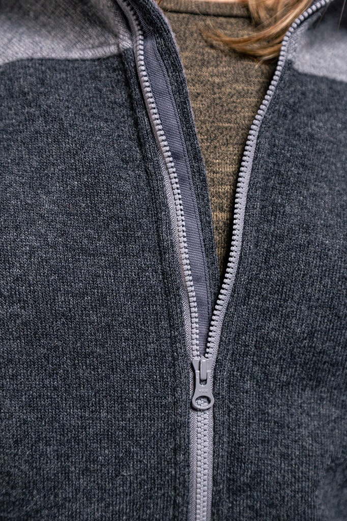 Oberstoff: 40% Wolle recycelt, 30% Baumwolle recycelt, 15% Polyamid, 8% Polyester, 7% Sonstige Fasern