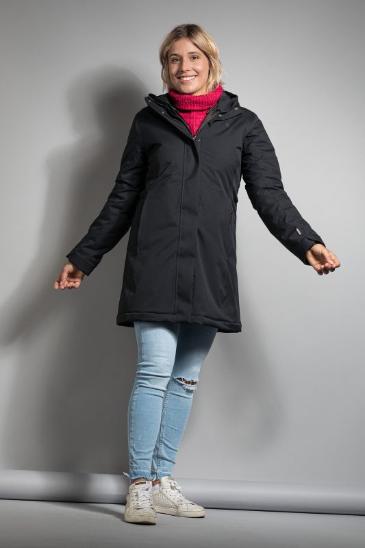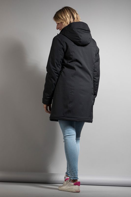 - Zweiseitig verstellbare, wattierte Kapuze mit Regenschutz