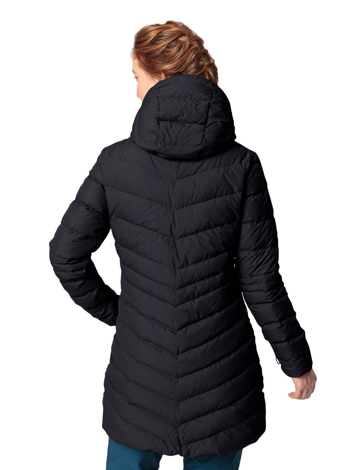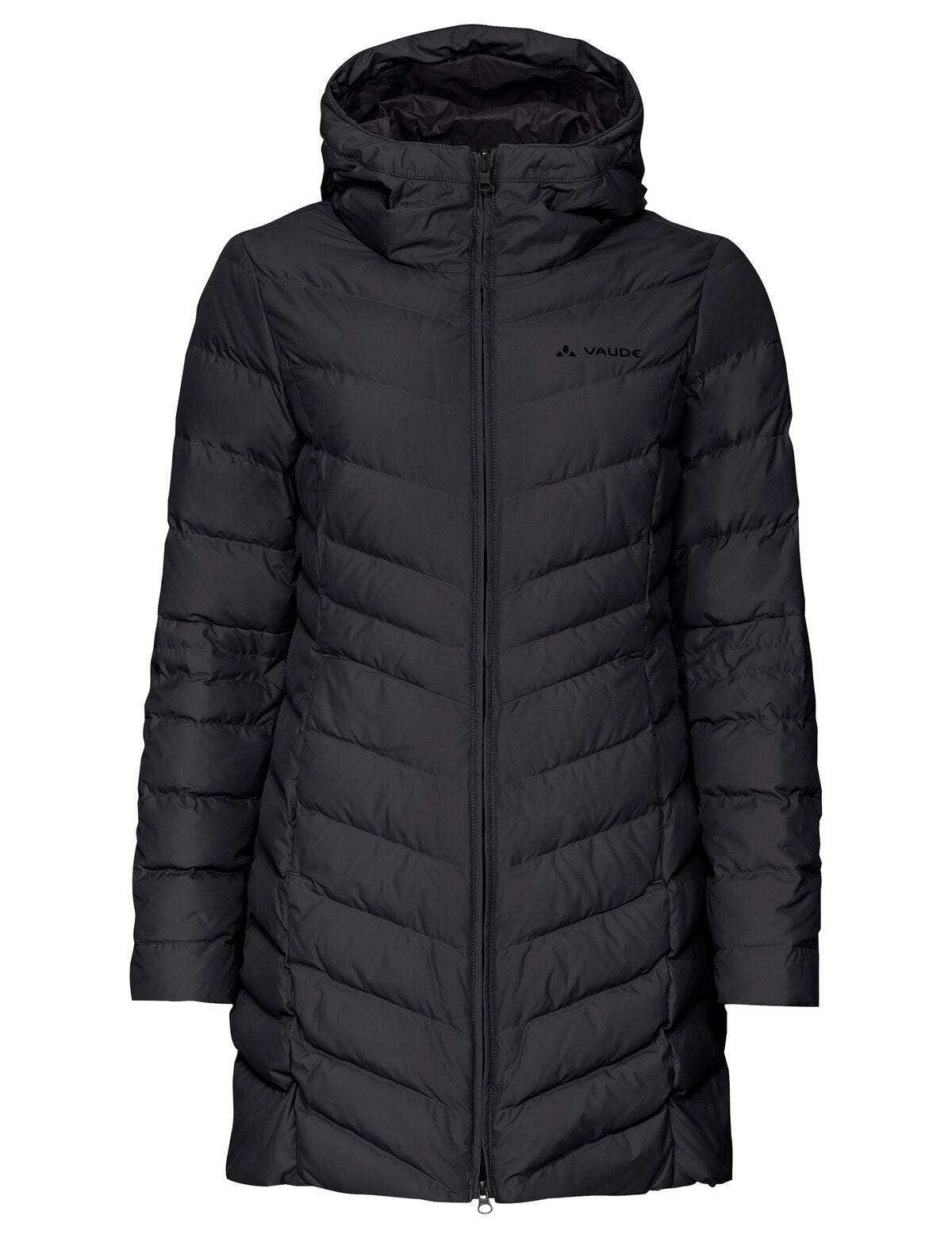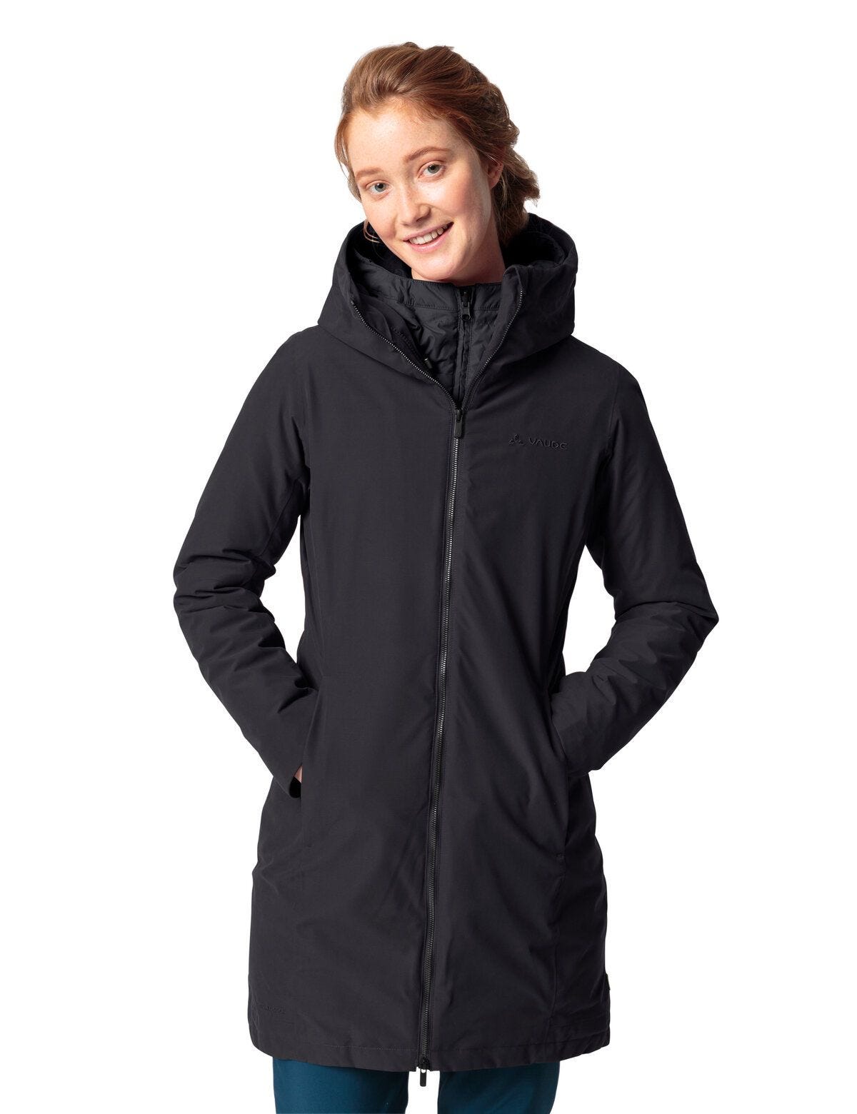Der zwei-Wege-Reißverschluss ermöglicht einen Zugriff auf die darunterliegenden (Hosen-)Taschen und die wasserdichte, atmungsaktive Membran sorgt für einen optimalen Tragekomfort. Dieser vielseitige, feminine Mantel für Stadt und Alltag kann von Herbst bis Frühjahr getragen werden und ist mit Eco Finish umweltfreundlich wasserabweisend ohne Fluorcarbone (PFC) hergestellt. Das VAUDE Green Shape-Label steht für ein umweltfreundliches, funktionelles Produkt aus nachhaltigen Materialien.