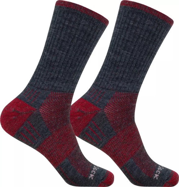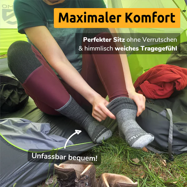 Wer übermäßig stark zu Blasenbildung beim Wandern neigt, sollte die Socken von Wrightsock ausprobieren! Die spezielle Bauart des Modells Merino Escape Crew aus zwei teils vernähten Stofflagen sorgt dafür, dass Reibung zwischen ebendiesen stattfindet und nicht zwischen Socke und Fuß. Die Innenlage besteht aus einem feuchtigkeitsableitenden Kunstfasermix, während die äußere einen Merinowollanteil von 68 % aufweist, der die Geruchsbildung hemmt. Die mitteldicke Merino Escape Crew ist außerdem mit polsternden Elementen ausgestattet und mit dem wadenlangen Schnitt passt die Funktionssocke sowohl zu Halb- als auch zu knöchelhohen Wanderschuhen.